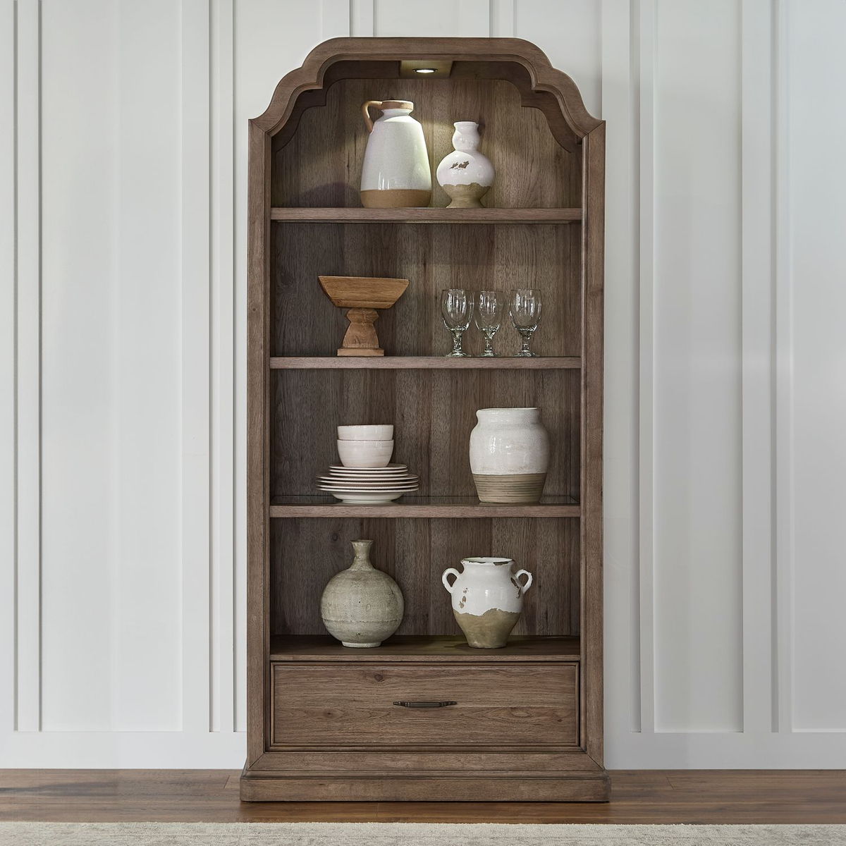 - Open Display with a Scalloped Shaped Top