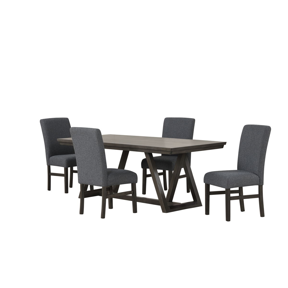 The High Line Dining Set is designed to be the centerpiece of your dining experience. Including one trestle dining table and upholstered side chairs, this set is built to last, expertly crafted from solid Acacia and Rubberwood, enhanced with high-quality manufactured woods and Birch veneers, ensuring unmatched durability and stability. The meticulously hand-applied, multi-step finish features a smooth, matte hue with sophisticated undertones, creating a modern, sleek ambiance that fits perfectly in contemporary spaces. The chairs, upholstered in luxurious bouclé fabric, offer exceptional durability and comfort, making them ideal for frequent use. The unique looped texture adds both elegance and longevity to your dining area. The table’s flat, rectangular top and crisscross leg design emphasize functionality and simplicity, making it a versatile addition to any room, from dining areas to workspaces. This dining set comfortably seats up to six guests, with the plush chairs upholstered in easy-care polyester fabric, blending elegance with practicality. Make this unparalleled dining set a marvel of your home, combining style, comfort, and lasting quality.