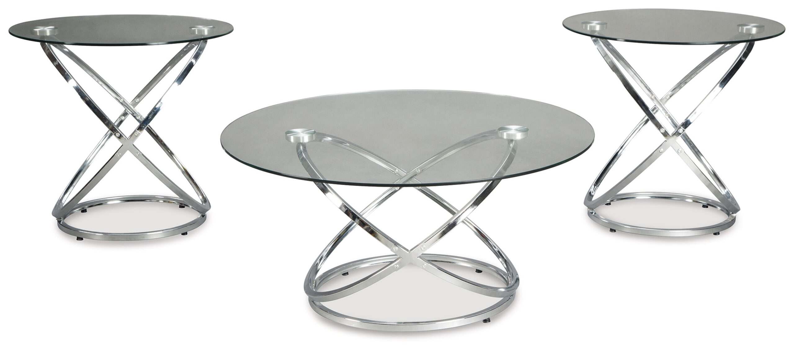If you’ve been holding out for an ultra-contemporary look that’s delightfully unique, this round coffee table set is clearly worth waiting for. Chrome-tone metal rings are topped with clear glass with polished edges for a masterfully modern look with minimal fuss.