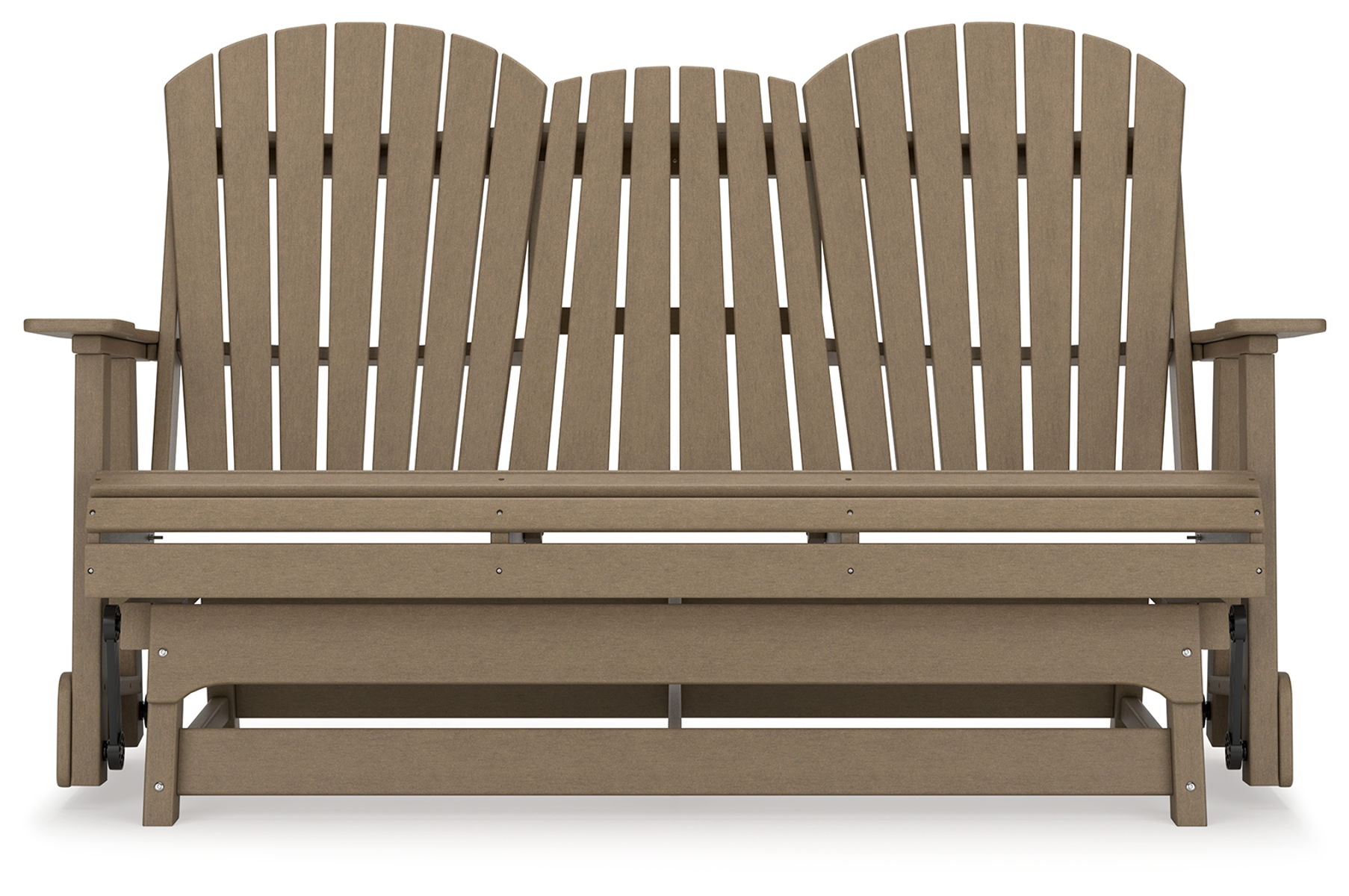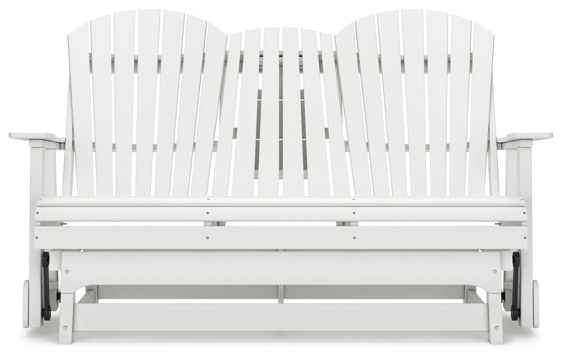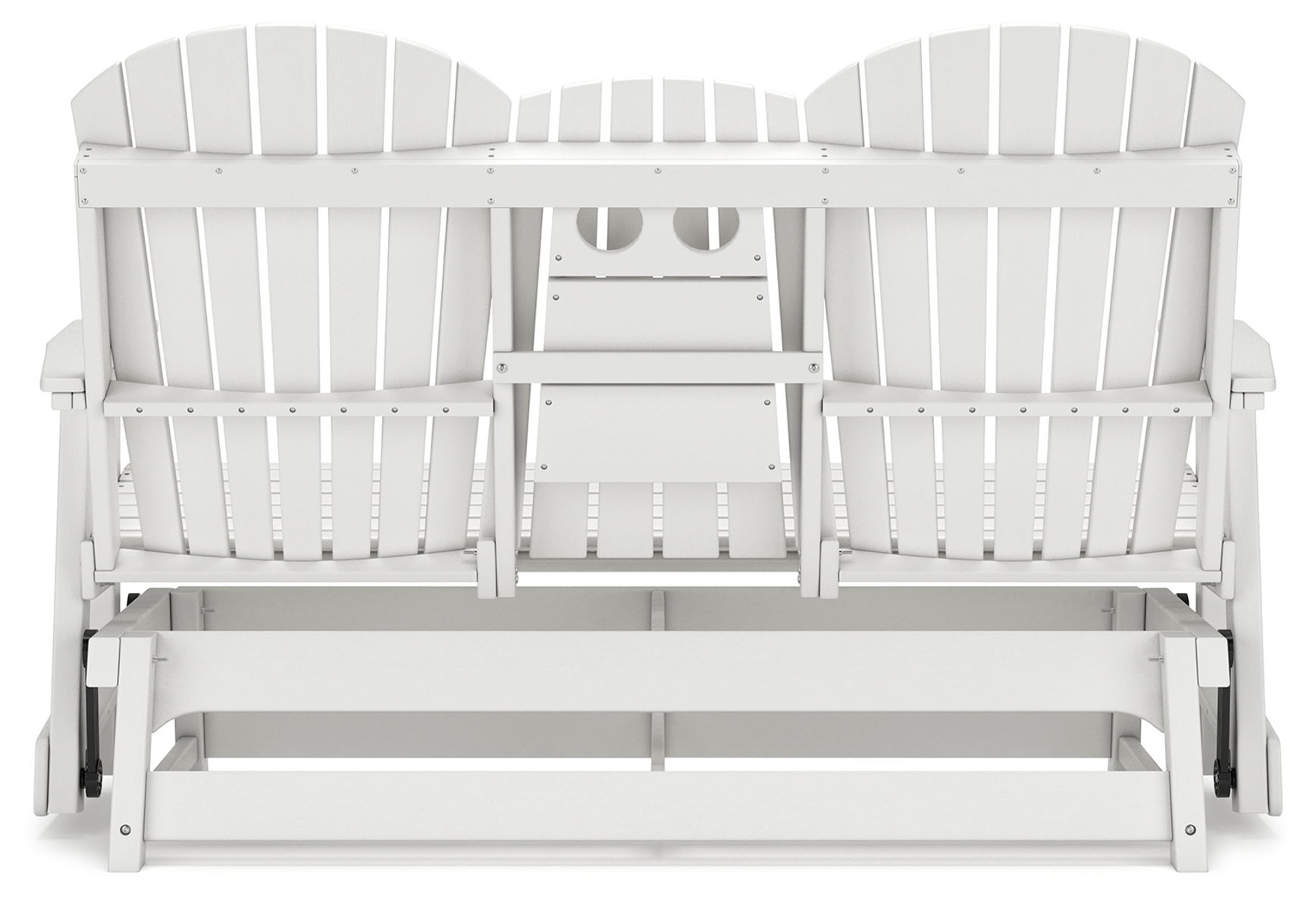 Drift away from everyday worries and into outdoor bliss with this glider loveseat. The Adirondack-inspired design has a classic feel. It weathers sunny summer days and cozy winter nights with durable MEGA-TUFF® HDPE material. A drop-down console with integrated cup holders keeps refreshments and snacks within easy reach. With the console snapped into the back, this loveseat has even more room for enjoying lazy days in the shade.