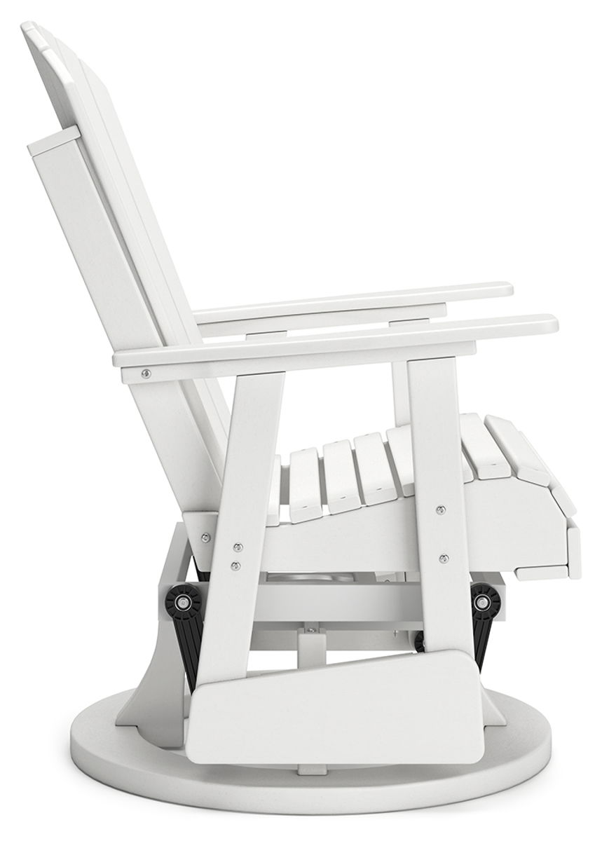 Drift away from everyday worries and into outdoor bliss with this swivel glider chair. The Adirondack-inspired design has a contemporary feel. It weathers sunny summer days and cozy winter nights with durable MEGA-TUFF® HDPE material. When it comes to form and function, the chair’s 360-degree swivel and rain-shedding slatted design simply go with the flow.