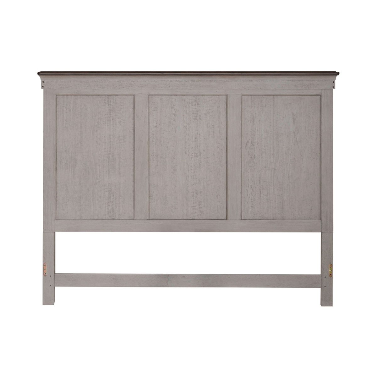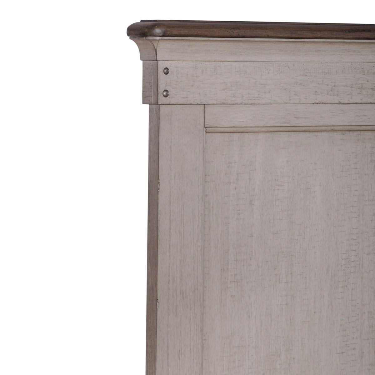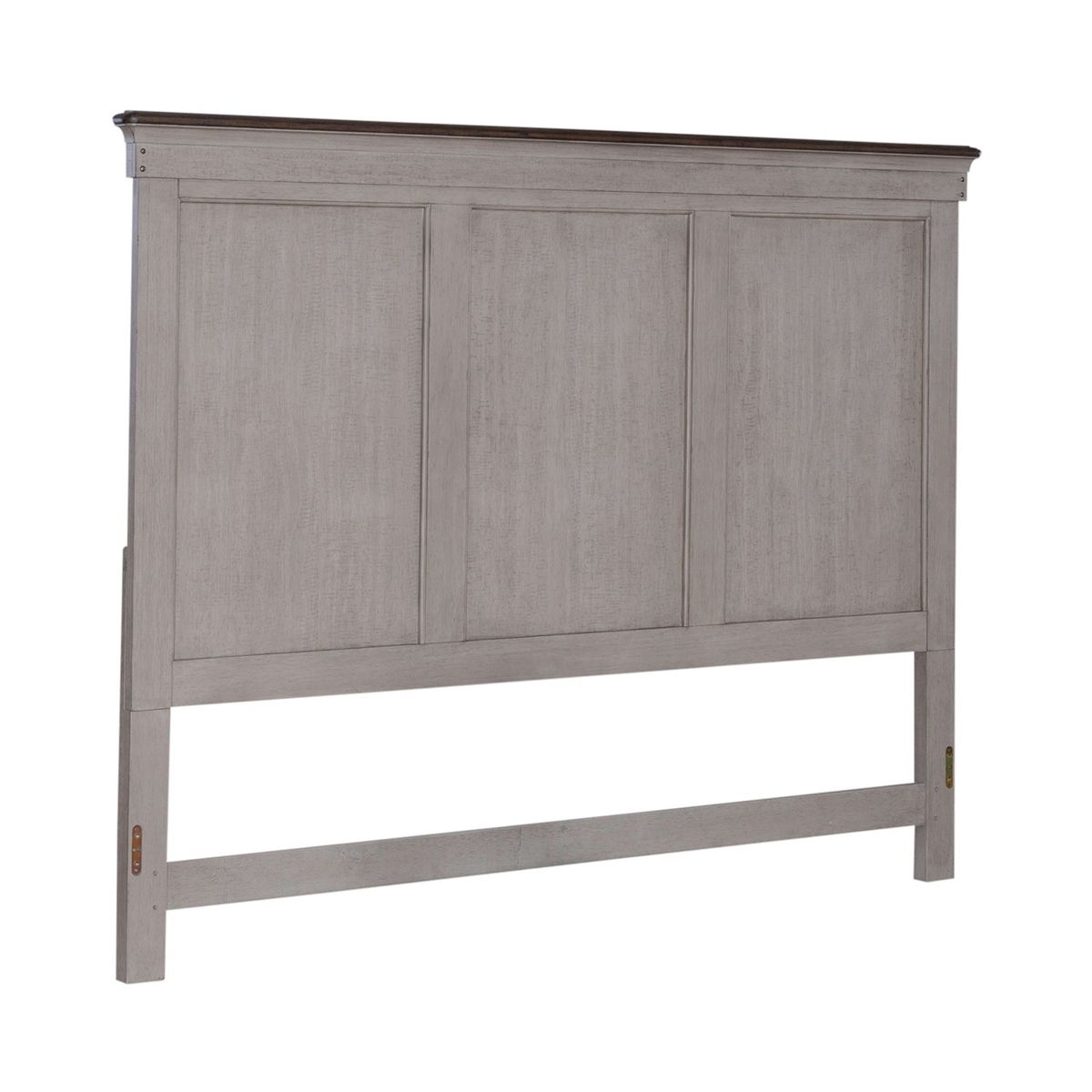 Panel headboard features heavy wire brushing and saw marks, finished in a two-tone weathered linen with a dusty taupe top cap. Headboard can stand alone with Hollywood frame. Pair with the footboard and rails for a complete bed.