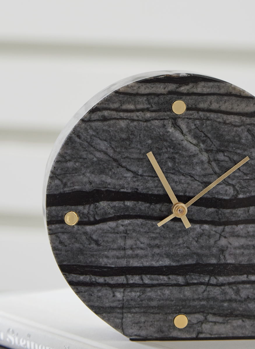 This table clock is a contemporary take on classic function. Made with marble, it brings an elevated feel to tabletops and decorative displays. Staying on time has never been so stylish.