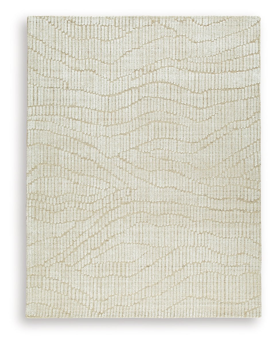 A go-with-the-flow sensibility. With abstract shapes and a simply soothing color palette, this rug is making waves for casual style. Its plush wool and bamboo textile blend masters the art of clean-chic style with a soft touch.