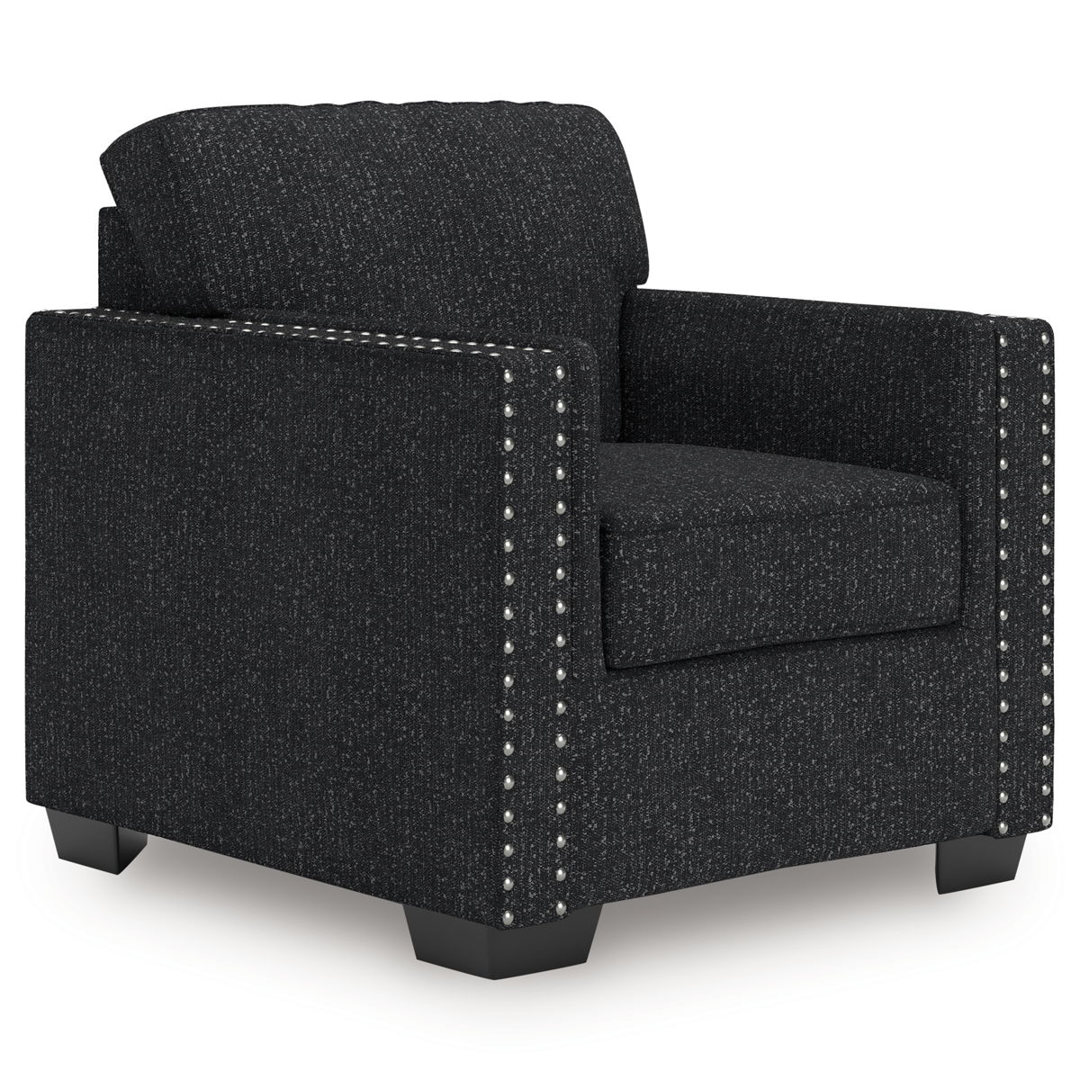 This stunning chair leaves a lasting impression. Its cozy cushions, chic coal-colored upholstery and striking nailhead trim are a perfect blend of comfort and contemporary design. And here’s the showstopper—ambient red, white and blue LED lighting along the chair’s base. The look is simply wow.