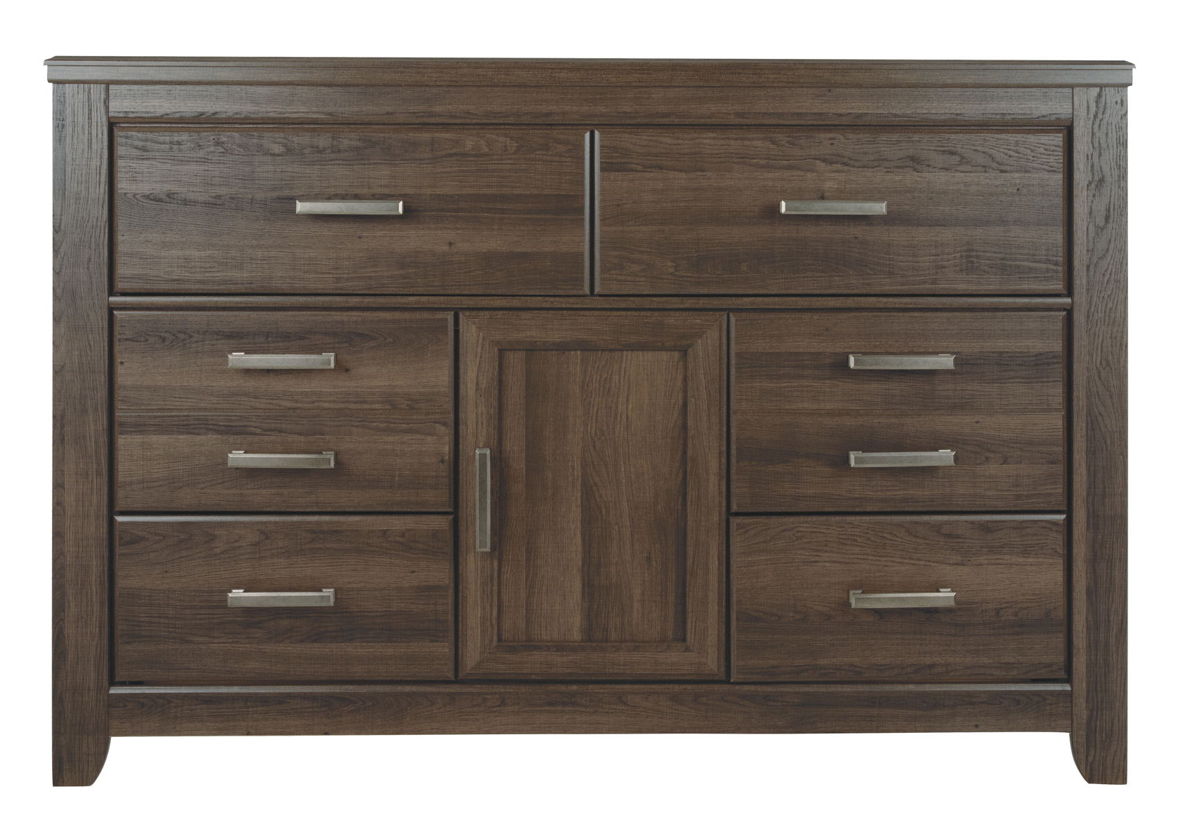 Get the look of posh barn wood without setting foot in a salvage yard. Replicated rough-sawn oak of this dresser has a vintage finish that is reminiscent of a timeworn family heirloom. Warm, rustic and naturally beautiful, it’s just got that ageless appeal. Sleek, mod pulls in a pewter tone are a snappy finishing touch.