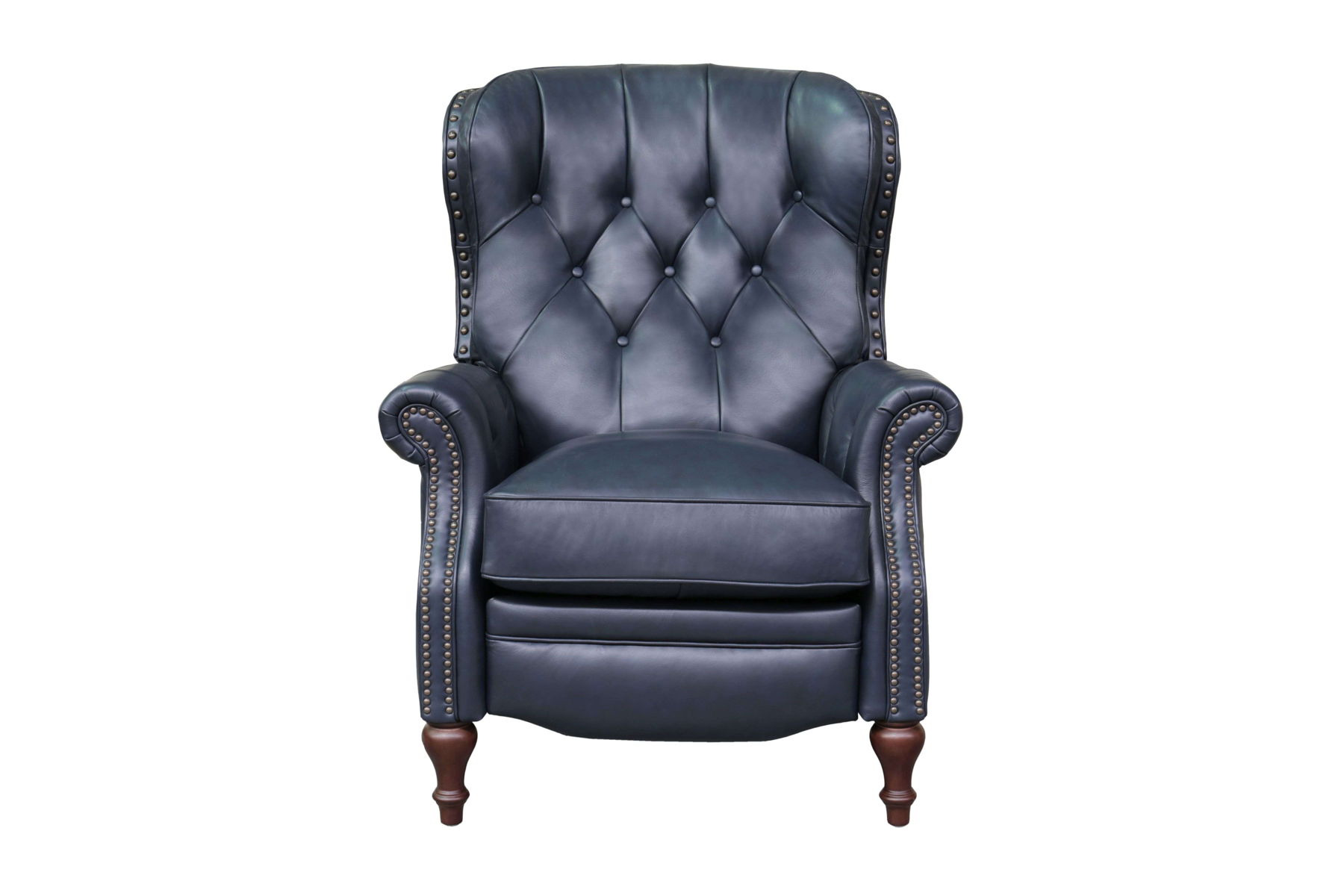 An Updated Classic With A Unique 44.5” High Barrel Back With Button Tufting. This Push Thru The Arms Wingchair Is Accented With Nail Head Trim, Shaped Ottoman Board And Knee Back Rolled Arms. Welted, Loose Boxset Cushion Contains Pocket Coil Springs With A Down Wrap That Will Provide Years Of Comfort. Hand Carved Wood Legs In A Finish Complete This Look.