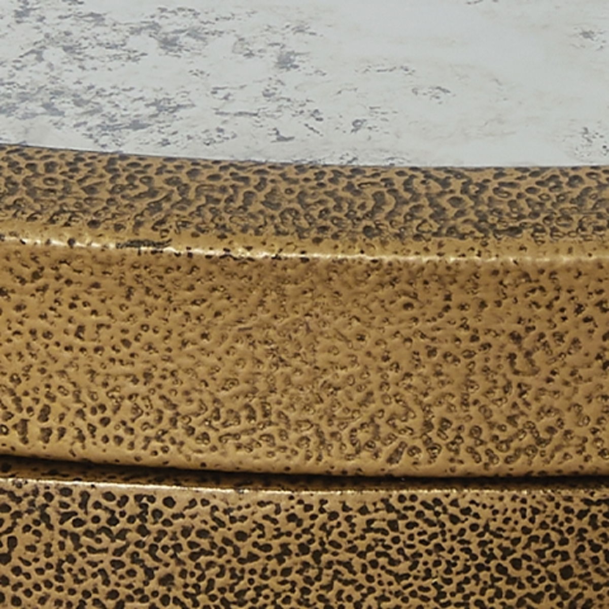 This table blends a traditional feel with contemporary design cues. Antiqued texturing on the frame has the look of timeworn, hand-forged metal. A tempered glass top with a faux marble finish provides a refined contrast. Chic when hosting decor or holding entertainment essentials, this table rounds out your living room with transitional flair.