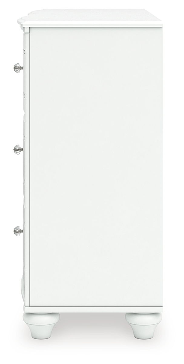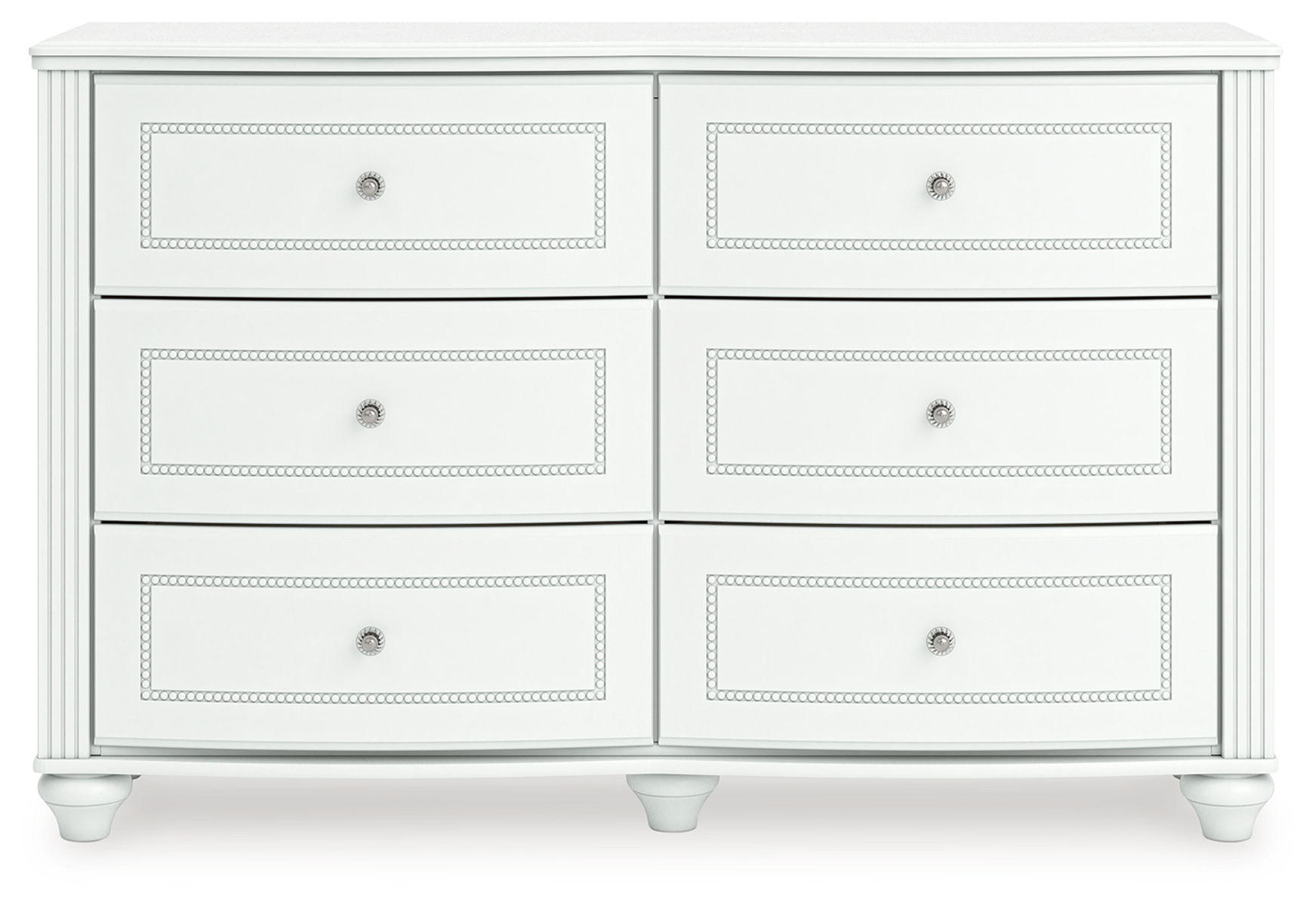 Fit for a princess. This dresser’s crisp matte finish pairs with charming elements like bun feet, crystal knobs and ornate beading—the perfect crowning touches for your girly girl. This spacious six-drawer piece is sure to make your little one feel like royalty.
