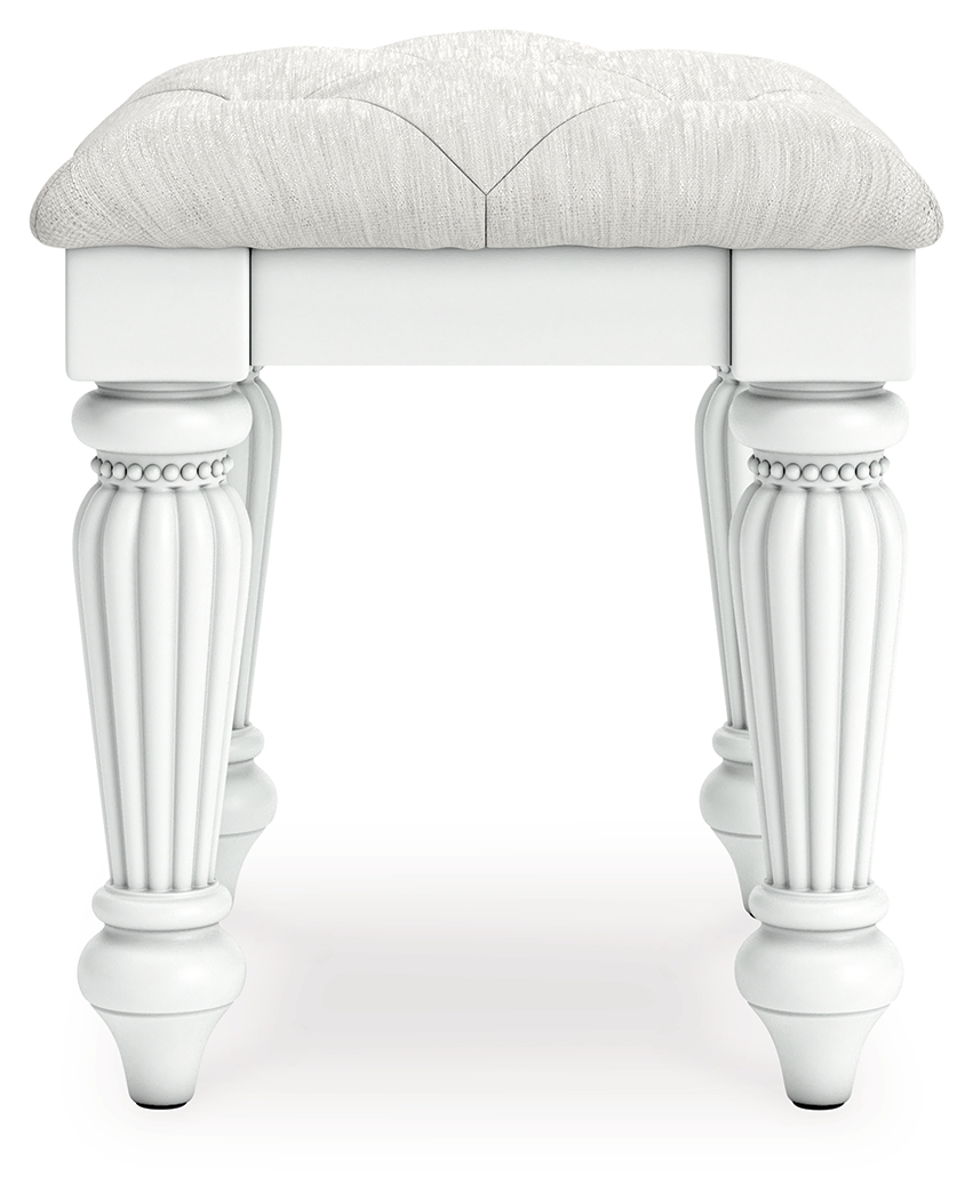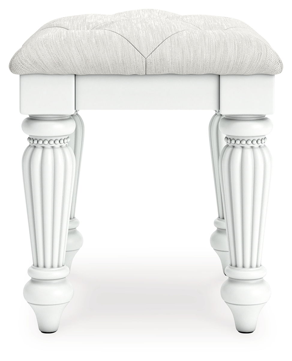 Fit for a princess. This vanity stool’s crisp matte white finish pairs with charming elements like turned legs, ornate beading and sumptuous button-tufted upholstery—perfect for your girly girl. This piece’s crowning touches are sure to make your little one feel like royalty.