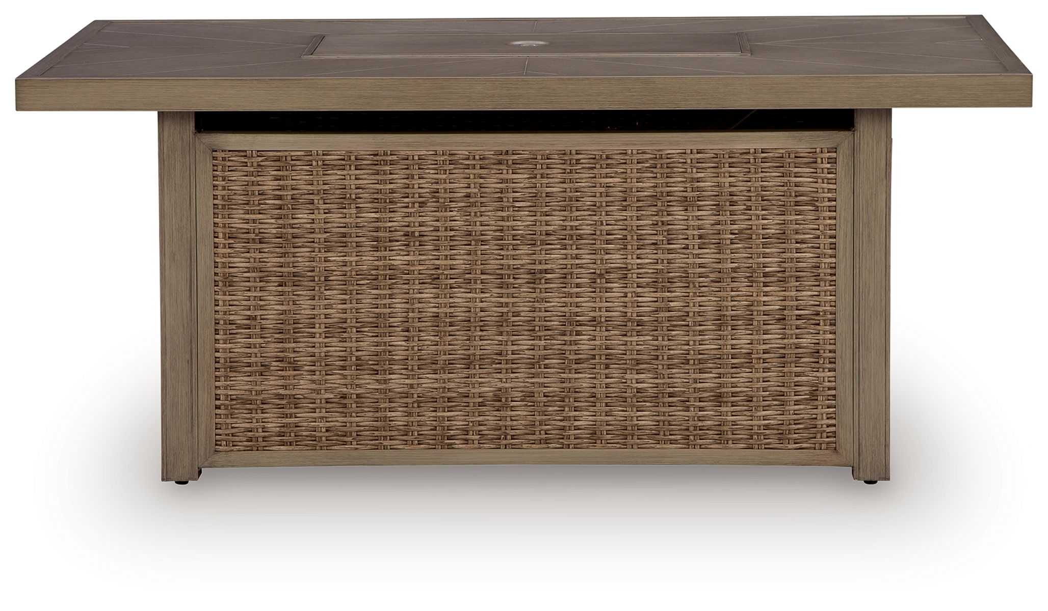 Who says the great outdoors isn’t made for luxury living? This outdoor fire pit table offers all of the high-end design and durability you could ask for, and then some. Its all-weather, rust-resistant aluminum frame provides the easy-breezy wicker look you love without the high maintenance. And with a stainless steel burner, this fire pit table turns your backyard into a hotspot for entertaining.