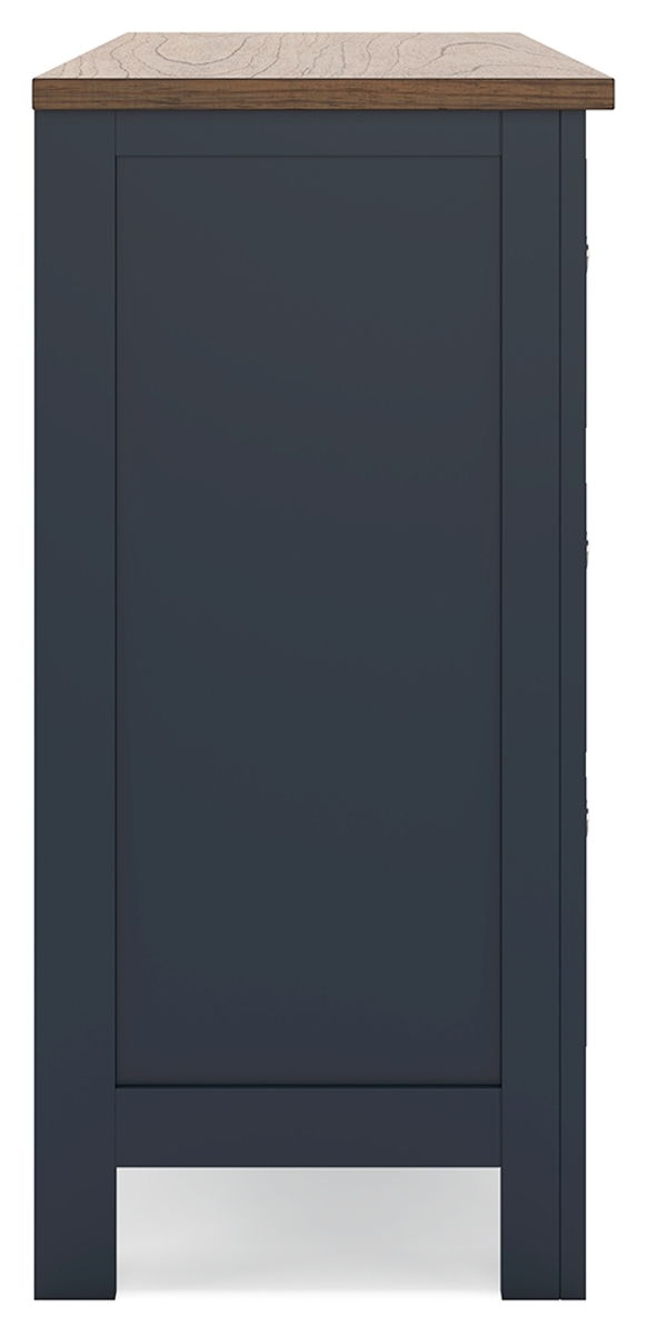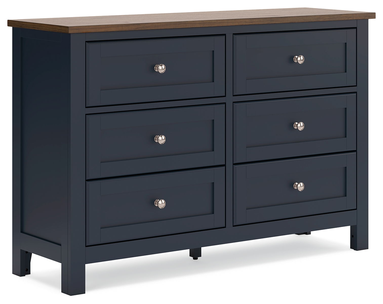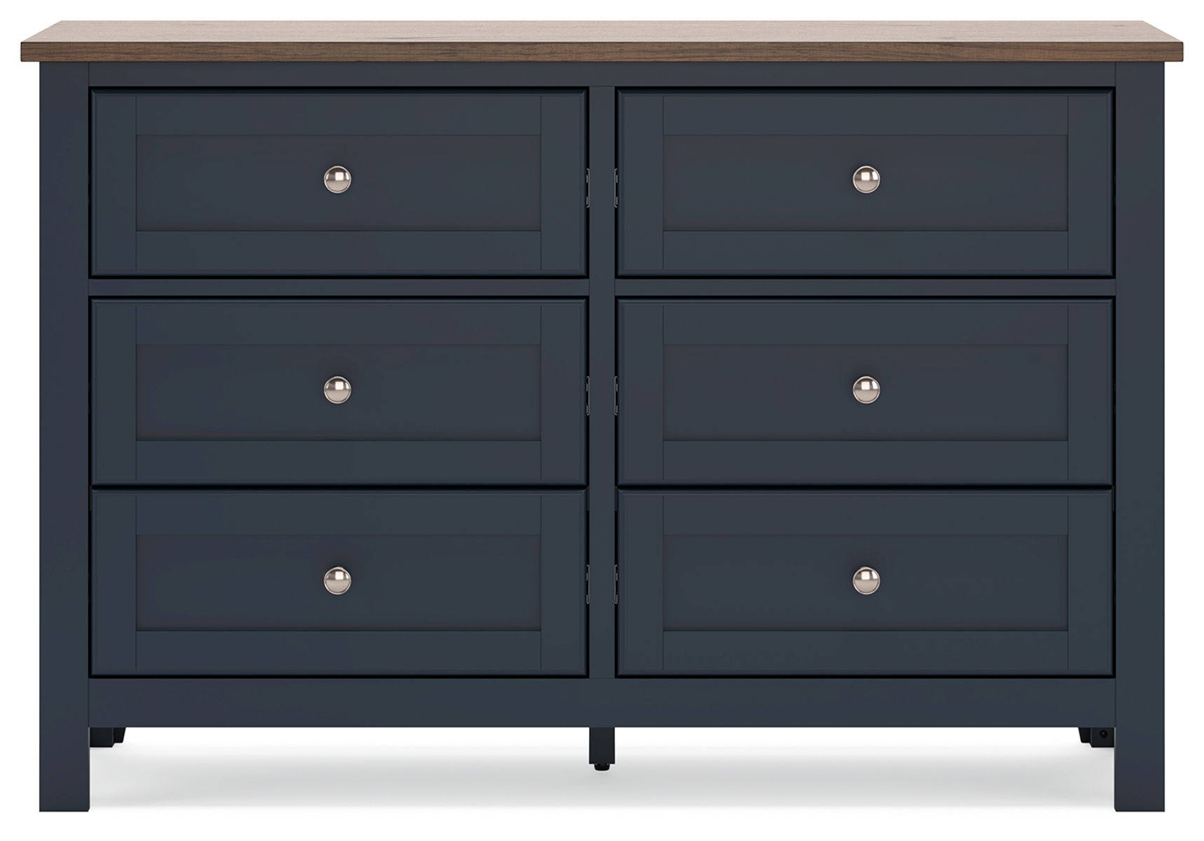 Add homespun charm to your restful retreat. A modern take on a timeless silhouette, this dresser pairs a dark slate blue finish with a light brown top. Drawer fronts and legs in a classic Shaker style bring an air of beautiful simplicity to the bedroom. Whether it’s part of a charmingly curated guest suite or a casually carefree kids room, this dresser is a welcome addition.