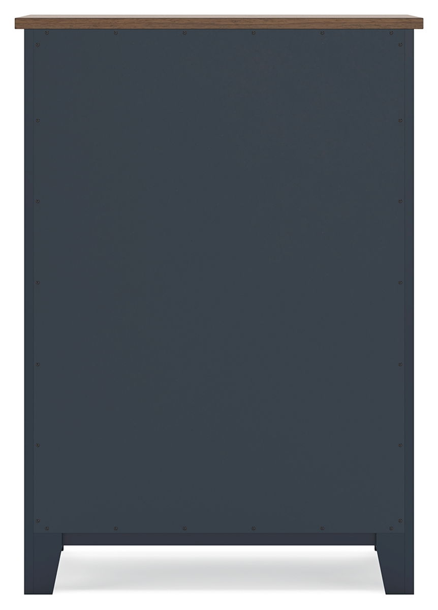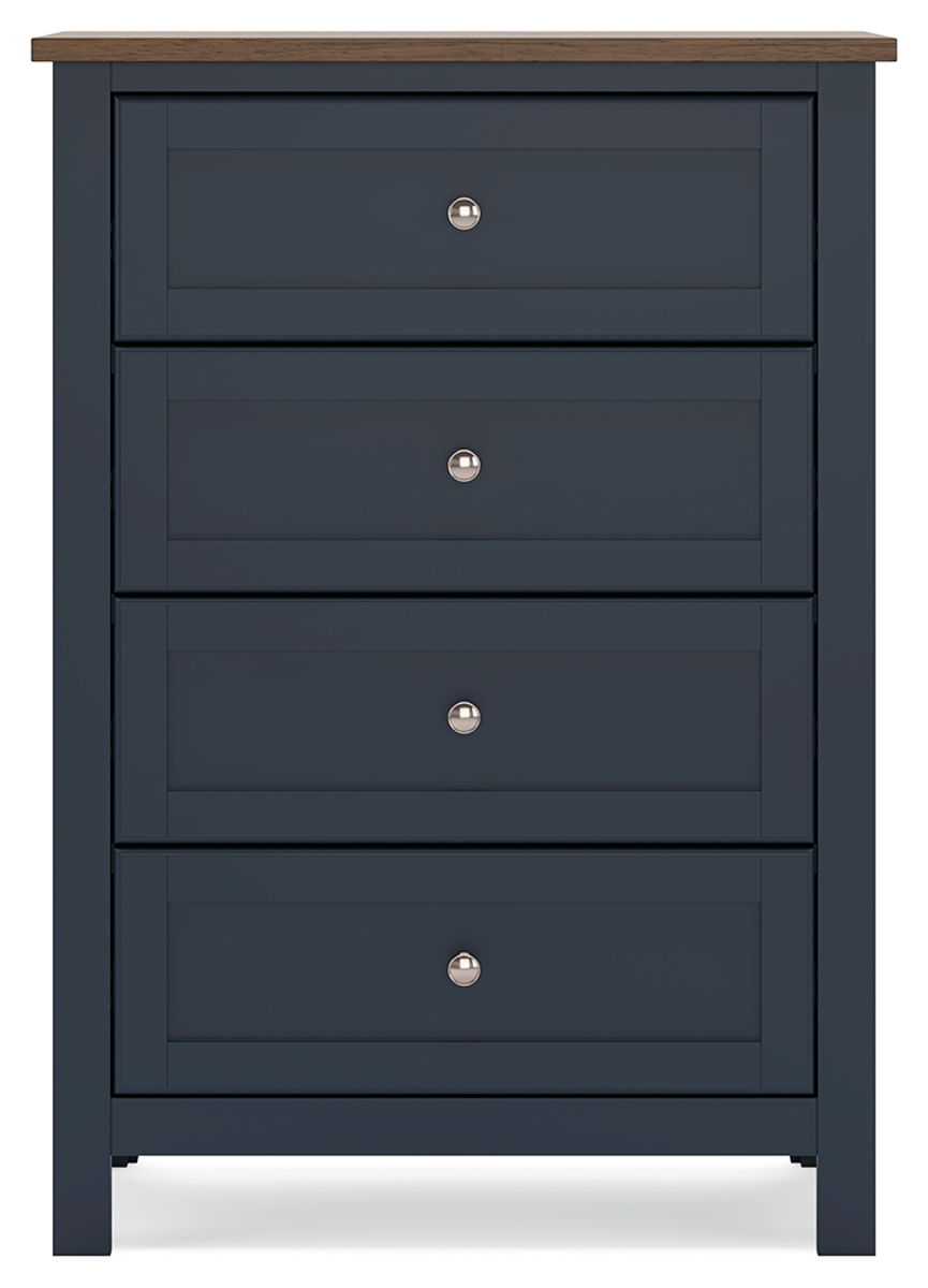 Add homespun charm to your restful retreat. A modern take on a timeless silhouette, this chest of drawers pairs a dark slate blue finish with a light brown top. Drawer fronts and legs in a classic Shaker style bring an air of beautiful simplicity to the bedroom. Whether it’s part of a charmingly curated guest suite or a casually carefree kids room, this chest is a welcome addition.