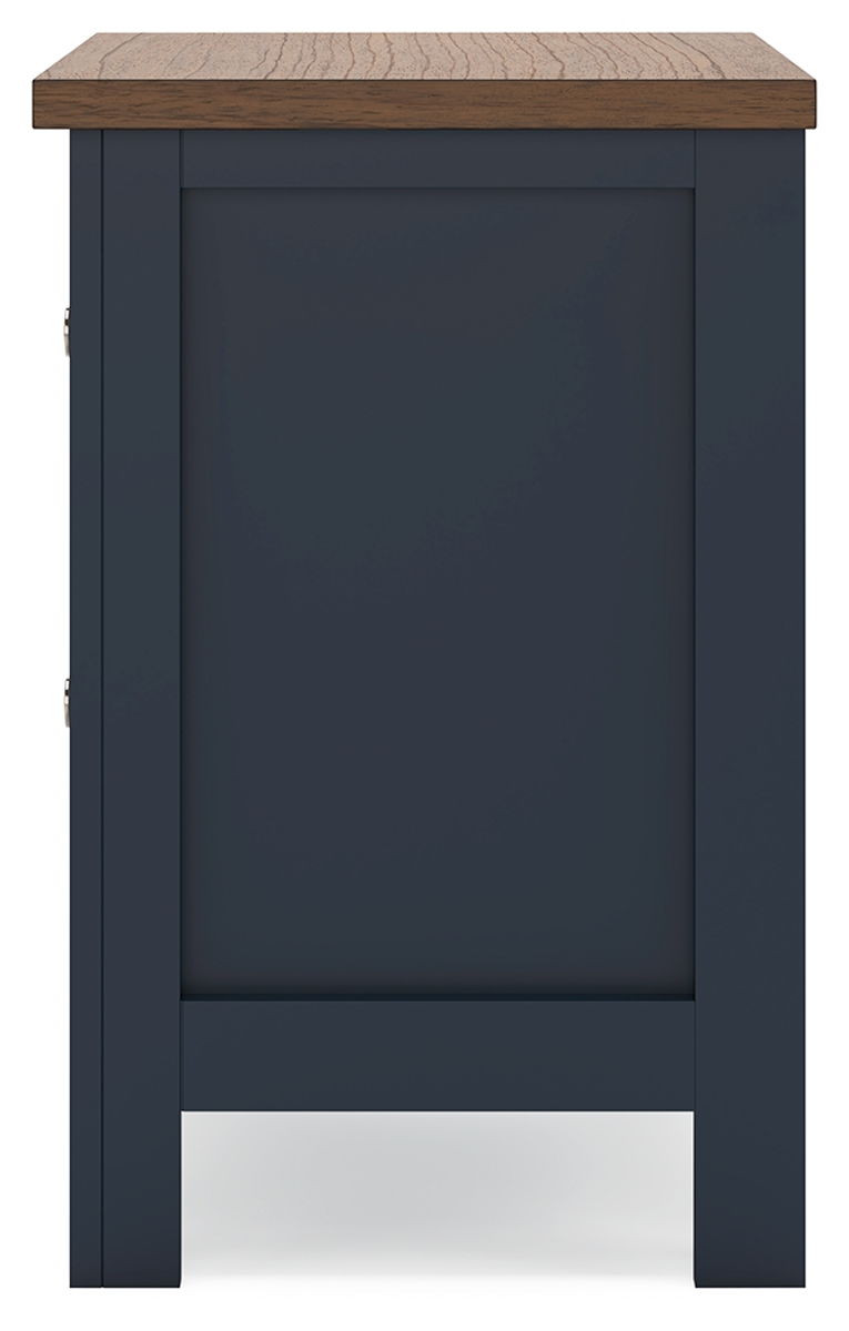 Add homespun charm to your restful retreat. A modern take on a timeless silhouette, this nightstand pairs a dark slate blue finish with a light brown top. Drawer fronts and legs in a classic Shaker style bring an air of beautiful simplicity to the bedroom. Whether it’s part of a charmingly curated guest suite or a casually carefree kids room, this nightstand is a welcome addition.