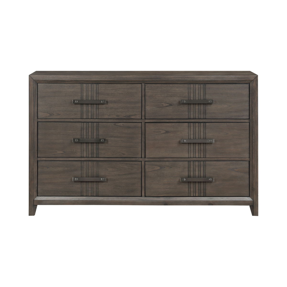 The Landon 6-Drawer Dresser combines durability, style, and practicality, making it a valuable addition to any bedroom. Expertly crafted from solid Pine, high-quality engineered woods, and genuine Mindi wood veneers, this dresser is built to last while showcasing the natural beauty of wood with its multi-step walnut finish and subtle gray undertones. The six spacious drawers offer ample storage, with dovetailed construction and full-extension slides that ensure smooth, effortless operation. Thoughtful details like snag-free drawer interiors and velvet-lined top drawers provide added protection for your valuables, while modern flat bar pulls enhance the dresser’s sleek, contemporary design. The Landon Dresser is the perfect blend of form and function, offering both elegance and convenience to your living space.
