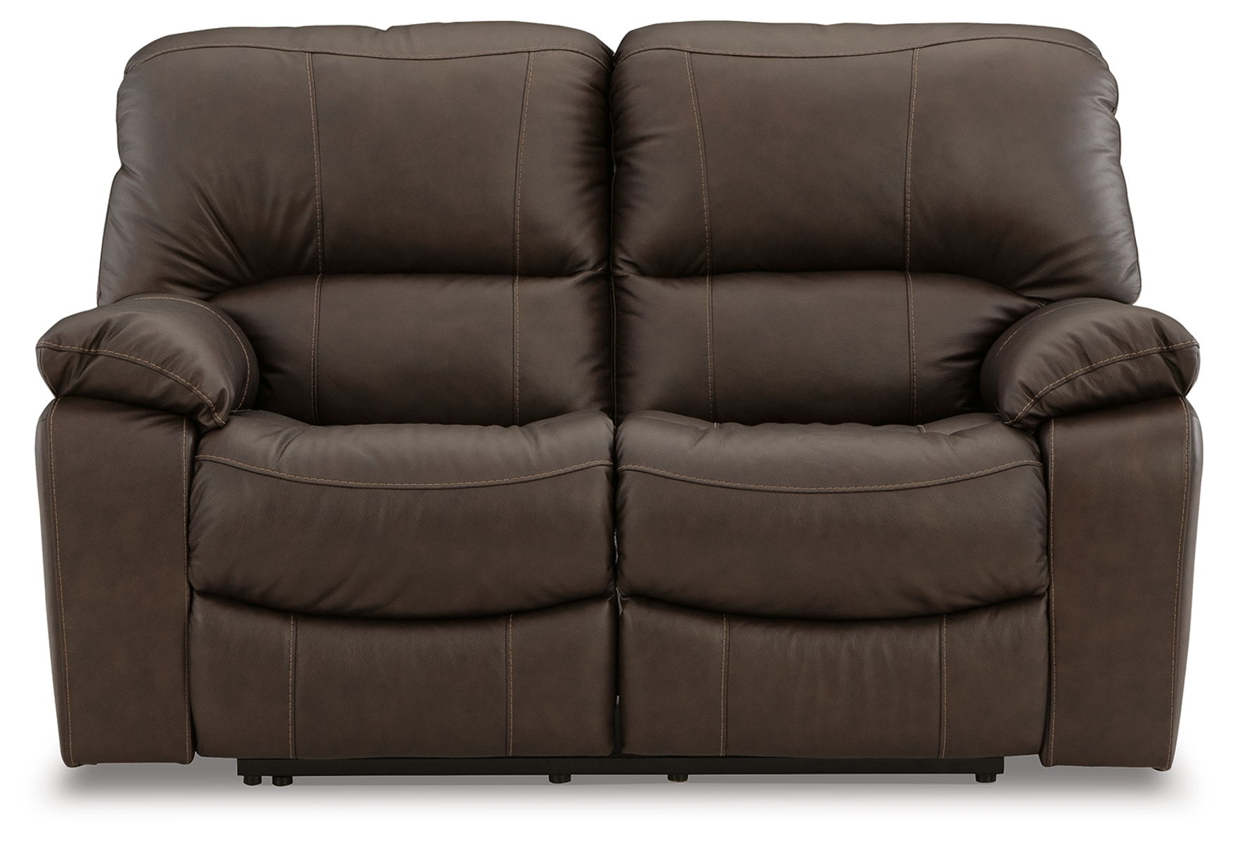 Focus on function. This practical reclining loveseat balances contemporary character and irresistible comfort. Its affordable, expertly matched leather and faux leather upholstery keeps your style up to speed without breaking the bank.