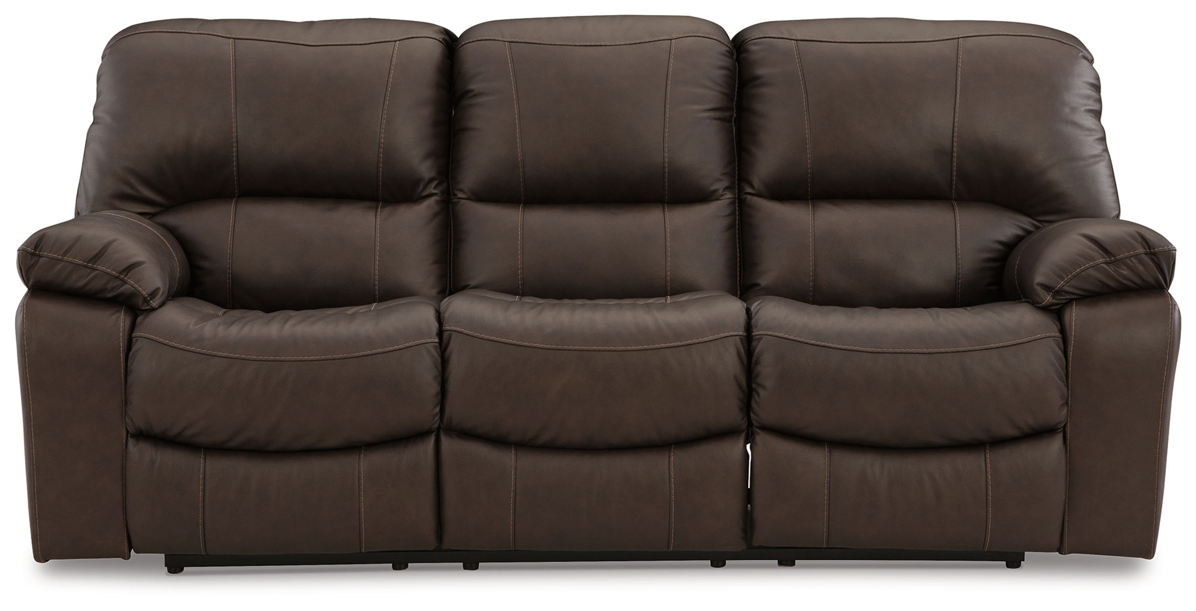 Focus on function. This practical reclining sofa balances contemporary character and irresistible comfort. Its affordable, expertly matched leather and faux leather upholstery keeps your style up to speed without breaking the bank. This piece plays well in relaxed, luxe seating areas made for quality time.