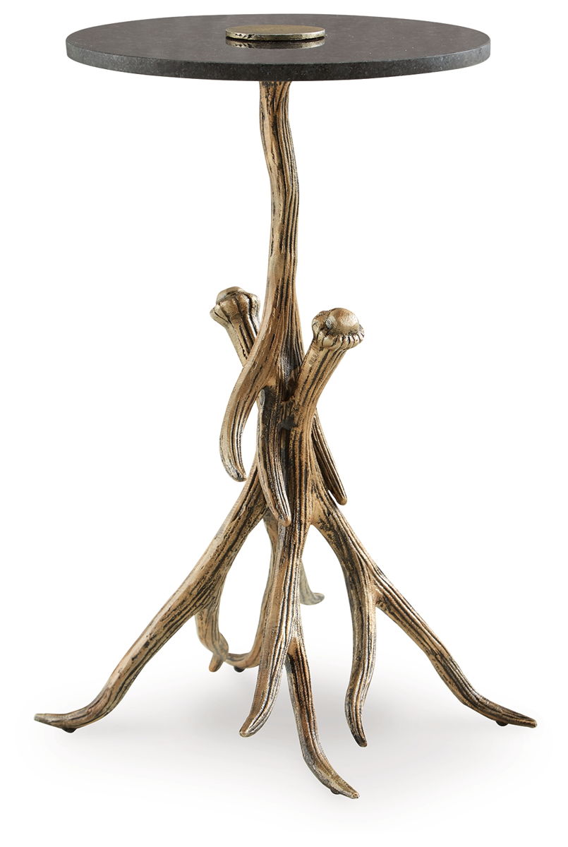 Elevate your living space with the captivating presence of this accent table. Rustic meets contemporary in the nature-inspired statement piece, which effortlessly delivers unique character. Faux antlers and a black marble top add a touch of elegance and character that’s sure to make a lasting impression.