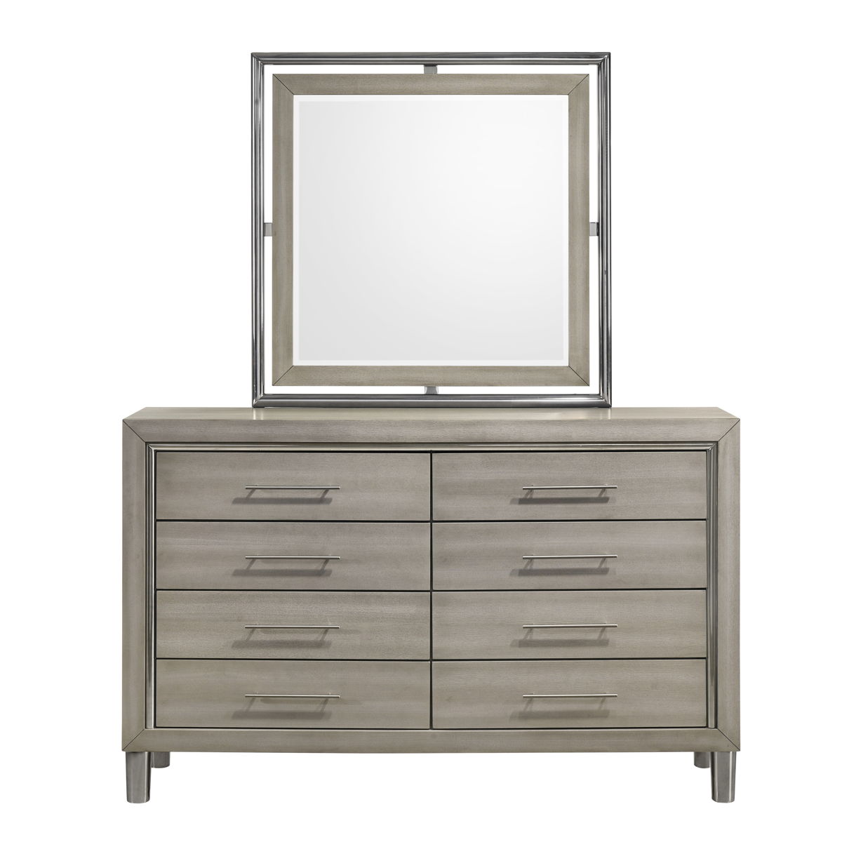 The Lennox 8-Drawer Dresser is a perfect combination of sleek design and functional storage, crafted to enhance your bedroom with modern sophistication. Made with premium engineered woods and eco-friendly gray ash laminate, this dresser offers a stylish, contemporary aesthetic built for long-lasting durability. Lustrous metallic trim accents elevate the light gray finish, adding a refined touch that creates a sophisticated ambiance. Designed with superior craftsmanship, its eight spacious drawers feature four-corner English dovetail joinery and smooth ball-bearing glides, ensuring effortless operation and enduring quality. The Lennox Dresser brings both elegance and practicality to your space.