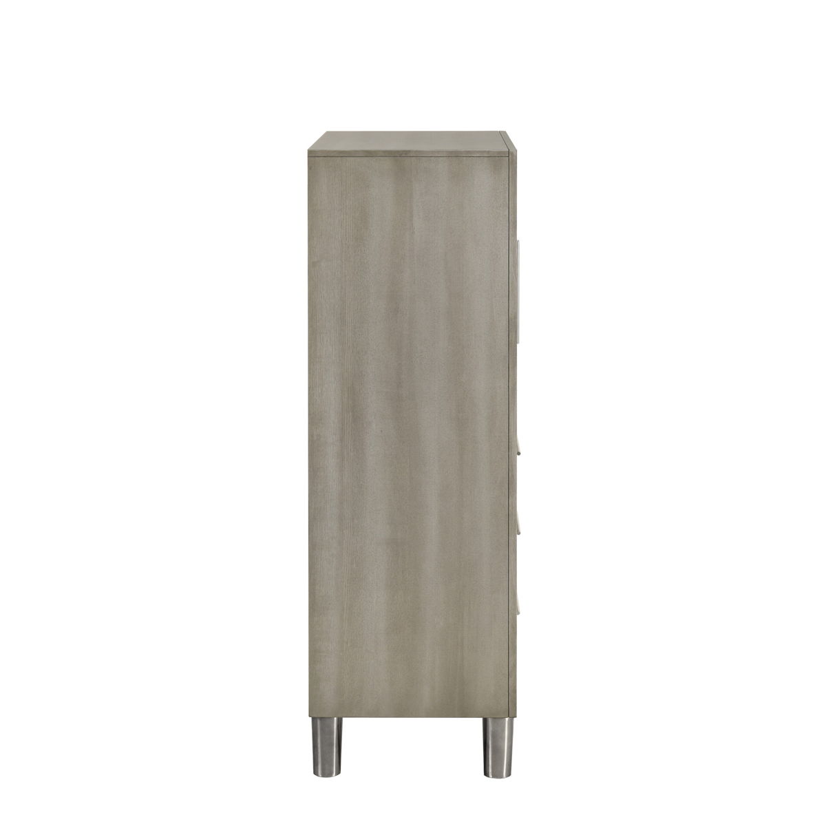 • Lustrous Details: The furniture features a specialty metallic finish over wood that mimics the modern, polished look of stainless steel while offering exceptional durability and scratch resistance. It enhances the light gray finish, adding a sleek, sophisticated touch ideal for a contemporary ambiance.