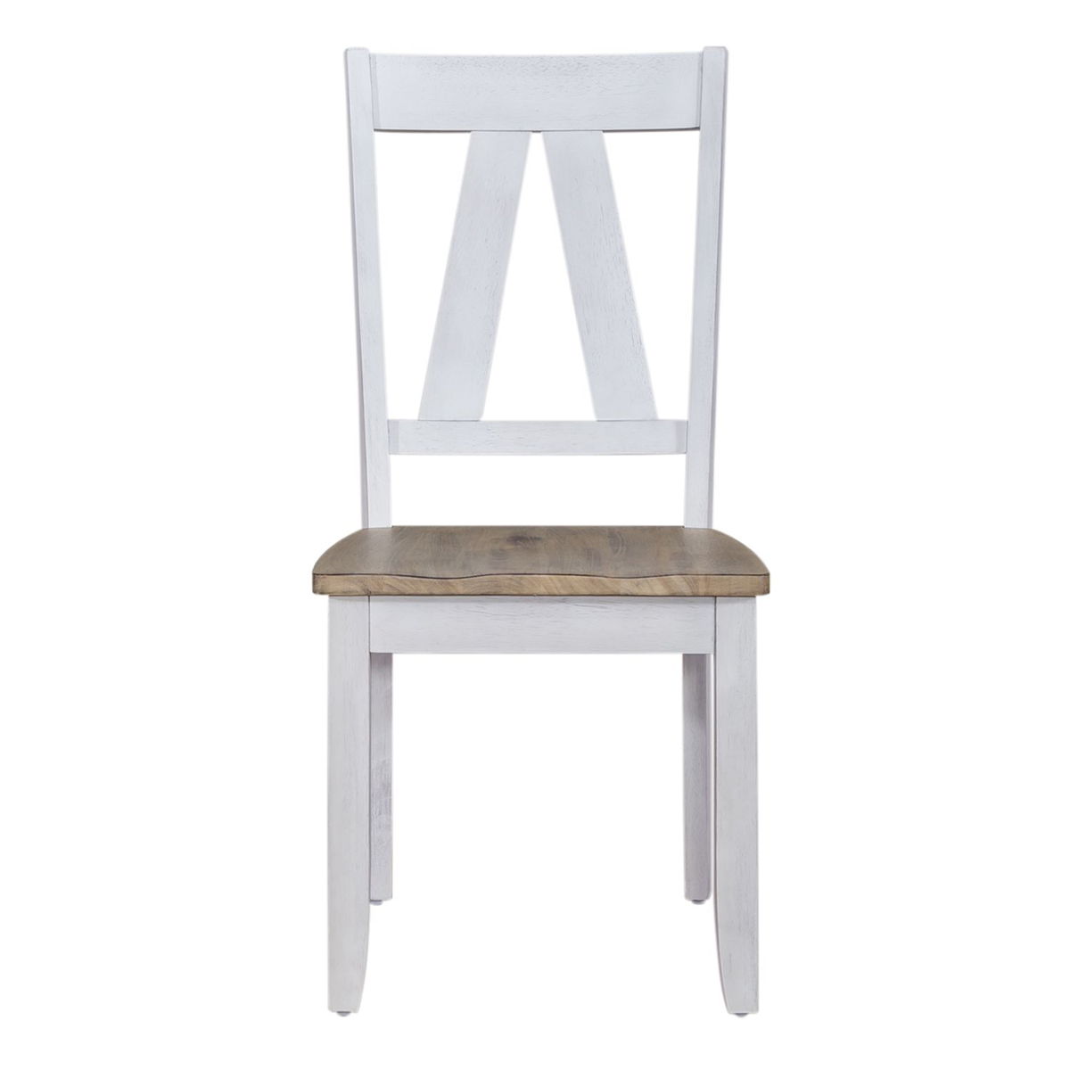 Sit in comfort and style with the Lindsey Farm splat back side chair. Crafted of rubberwood solids, this piece features a sandstone finish, inverted v design on the chair back, nylon chair glides to protect your flooring, and a saddle shaped seat for added comfort. This piece has an alternate finish and offers a look that compliments today’s homes with style uncompromised and comfort abound.