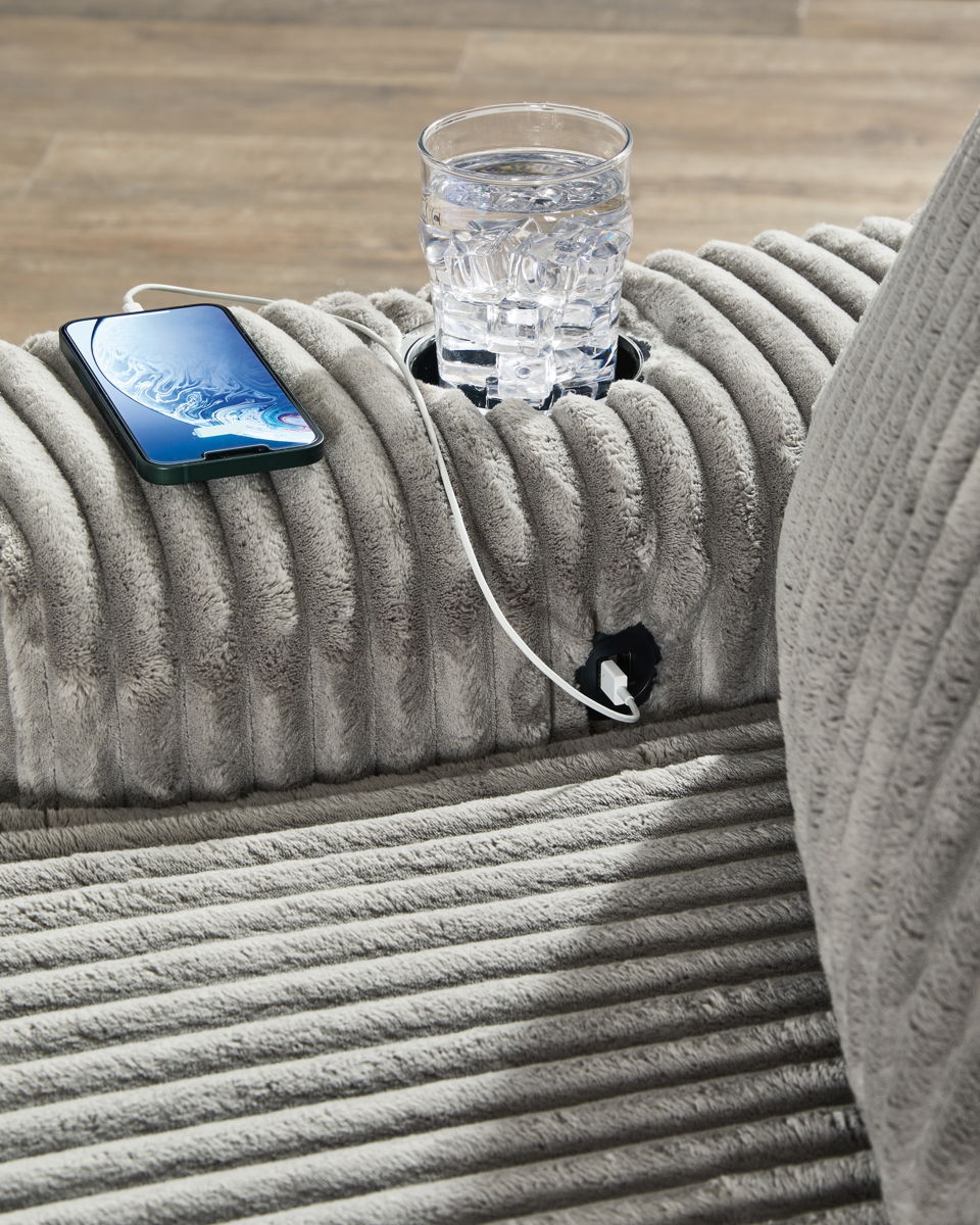 Plush and posh. Showcase your eye for on-trend texture with the statement-making cord upholstery of this chaise. Its stunningly soft fabric entices in a warm neutral hue, complementing contemporary color palettes. Sink into the cushions and plan to stay a while—this cozy oversized chaise highlights your high-end approach to comfort and style.