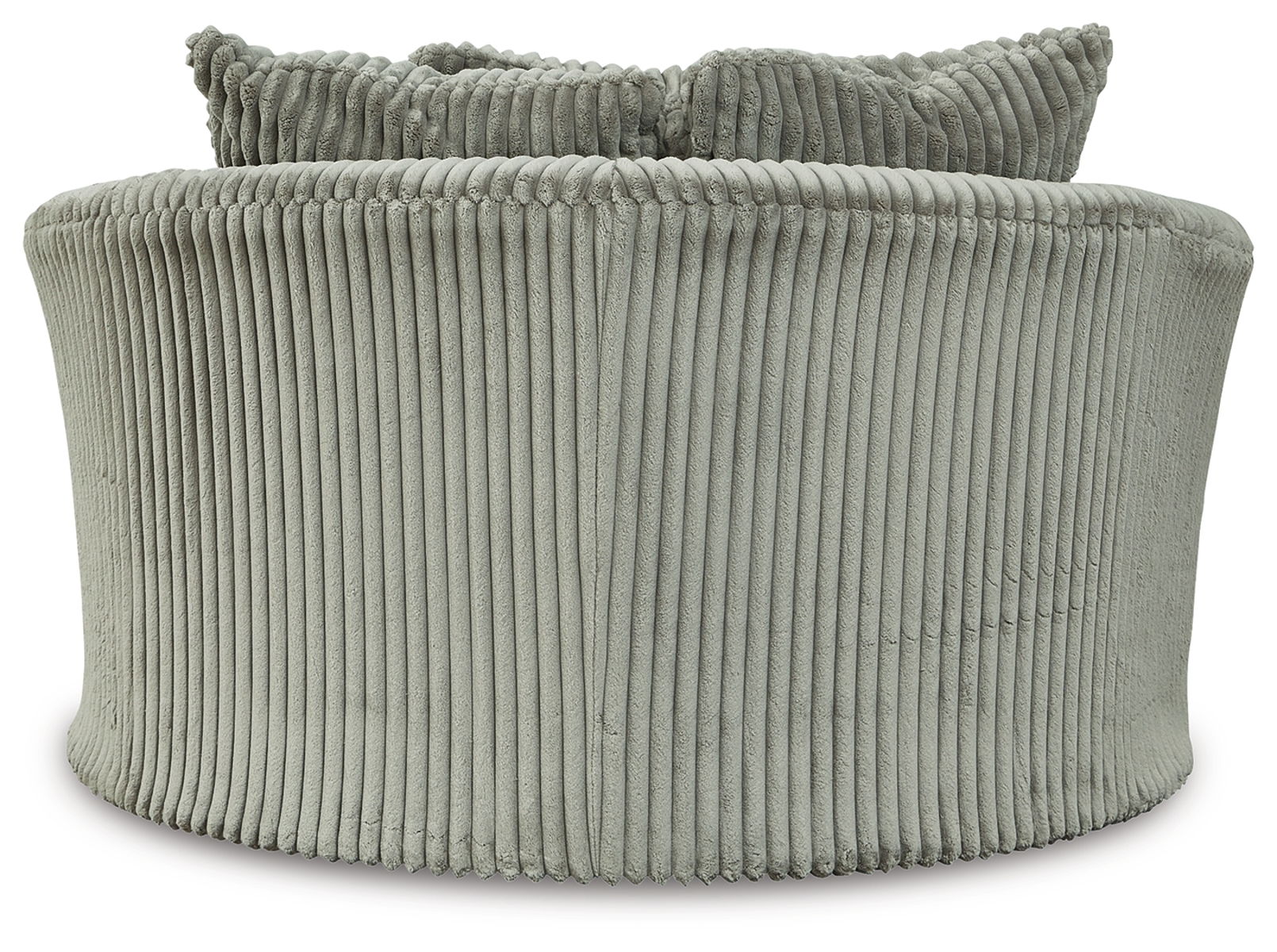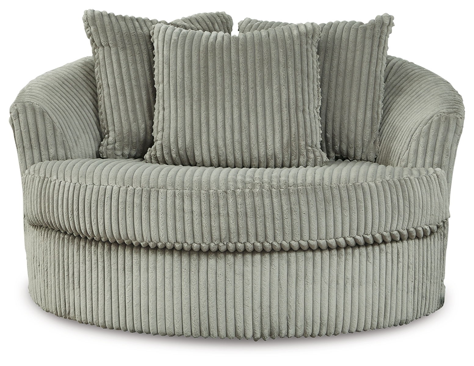 Plush and posh. Showcase your eye for on-trend texture with the statement-making cord upholstery of this oversized swivel accent chair. Its stunningly soft fabric entices in an ivory hue, complementing contemporary color palettes. Sink into the spacious cushion and plan to stay a while—this cozy living room chair highlights your high-end approach to comfort and style.