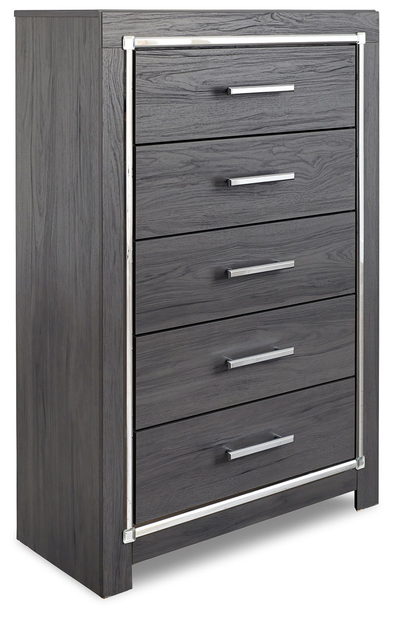 Reminiscent of Hollywood glamour of yesteryear, this bedroom set interprets luxury in a decidedly modern way. Sumptuous details include button-tufted upholstery, faceted faux crystals and chrome-tone accents beautifully lit by LED lights enhanced with remote-controlled settings for color and brightness.