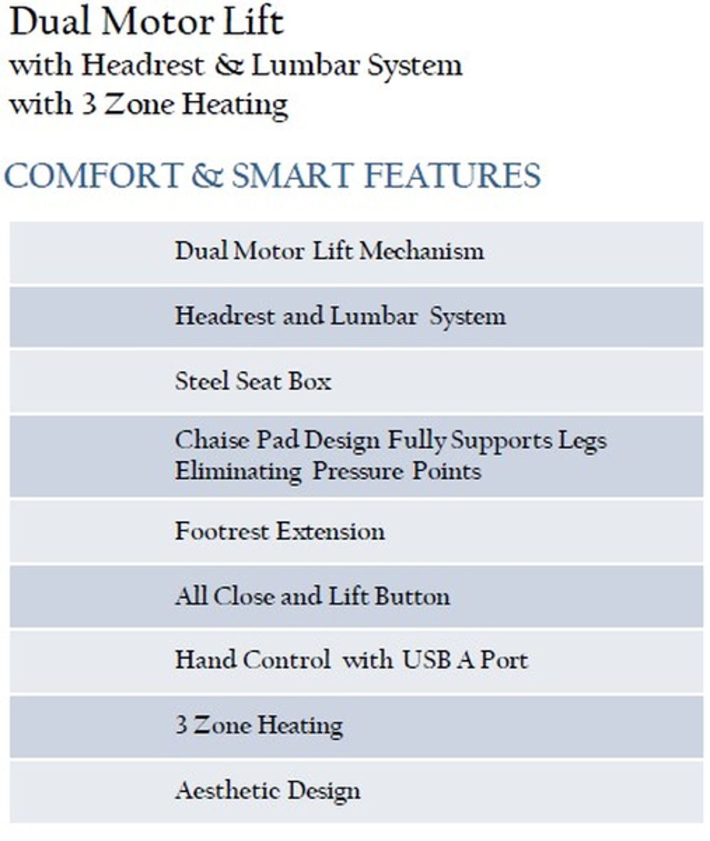 Lucas – Power Lift Recliner With Power Headrest, Power Lumbar And 3 Zone Heat