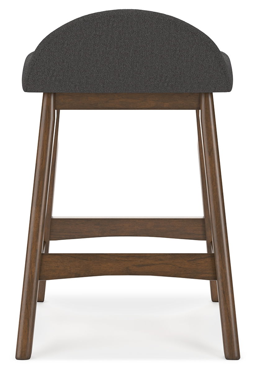 A refreshed take on retro aesthetics. This upholstered bar stool adds an air of playful simplicity to your dining space, capturing the architectural language of mid-century stylings. The seat invites the eye with a soft-edged silhouette and chic cushion. A casual, yet timeless, finish on the frame creates visual contrast to complete this study in form and function.