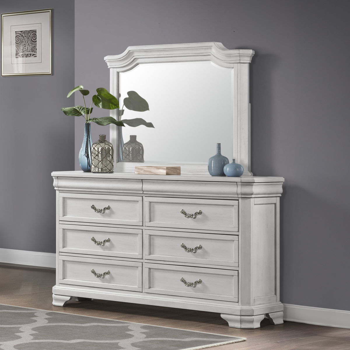 Introducing the Lyndhurst Landscape Mirror — a stunning addition to any bedroom decor. Crafted from solid Acacia, Acacia veneers, and manufactured wood, this mirror is built to last, ensuring enduring strength and durability. Its heirloom, achieved through a meticulous multi-step process, enhances the wood’s natural beauty with gentle distressing, burnishing, and glazing. Designed for use with the matching Lyndhurst Dresser, the masterful style of this mirror is evident in its substantial, tiered crown molding tops, creating a true statement piece that adds sophistication to any space. Enjoy a clear view with the low distortion, beveled glass, providing a true reflection that enhances your daily routine. Elevate your bedroom decor with the timeless elegance and masterful craftsmanship of the Lyndhurst Landscape Mirror.