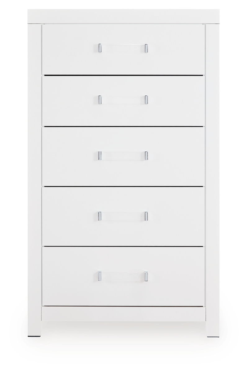 For those with a penchant for modern glamour, this chest of drawers reflects your upscale taste. It’s dressed in a sleek matte finish, with acrylic and chrome-tone hardware incorporating a subtle shine. Smooth-gliding drawers tuck away clothes and other essentials in style.
