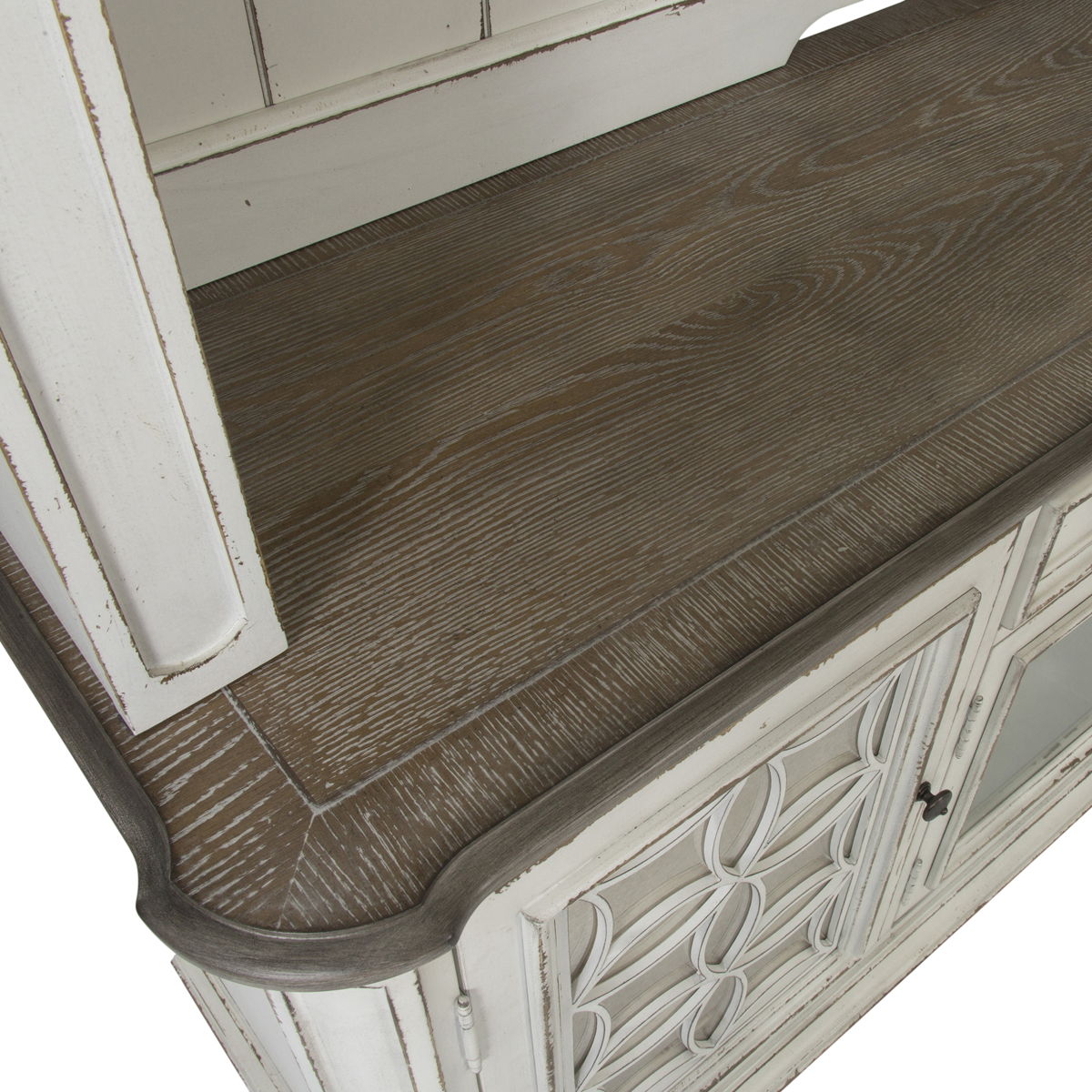 Blending of European influences makes Magnolia Manor a truly unique style for any living space. Warm antique finishes and artistic distressing along with grand scale a group to be passed to generations.