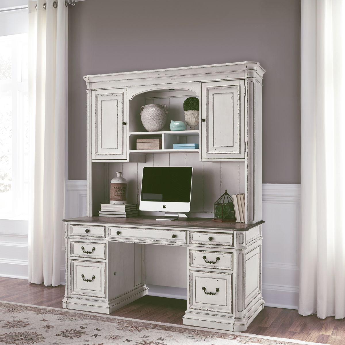 Blending of European influences makes Magnolia Manor a truly unique style for any living space. Warm antique finishes and artistic distressing along with grand scale a group to be passed to generations.