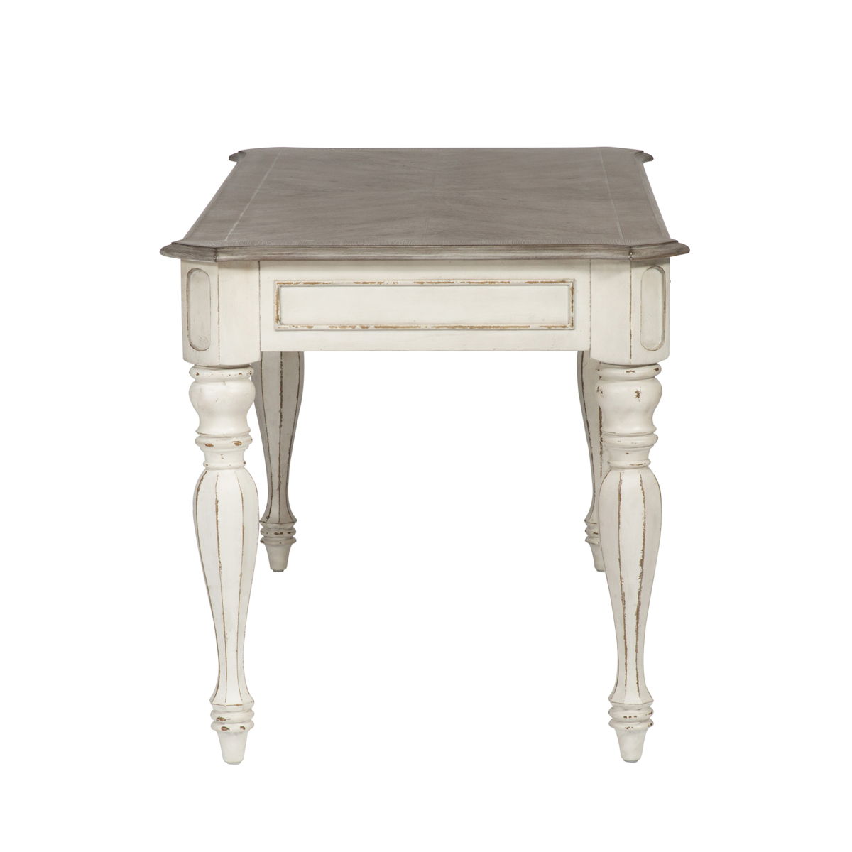Blending of European influences makes Magnolia Manor a truly unique style for any living space. Warm antique finishes and artistic distressing along with grand scale a group to be passed to generations.