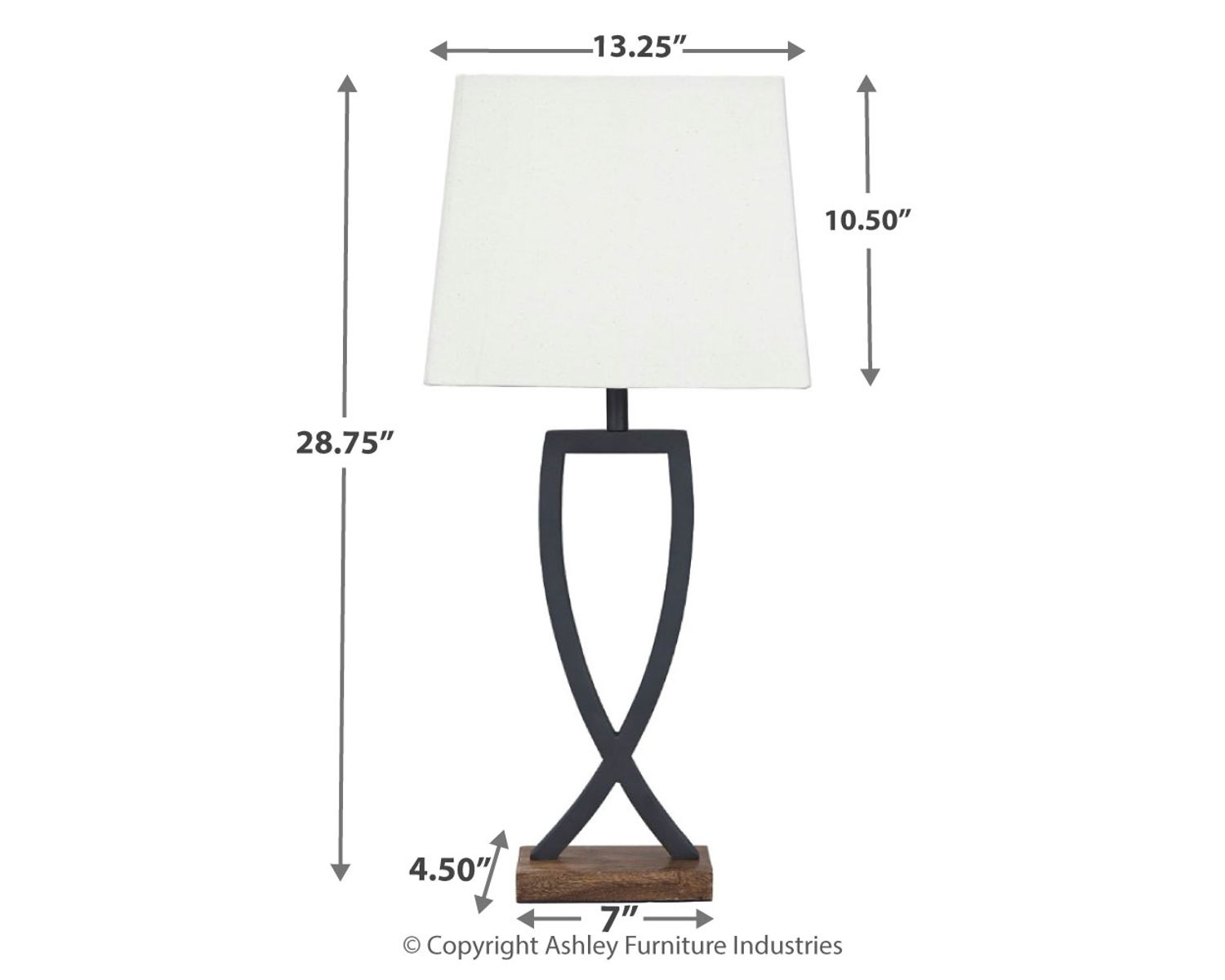 This table lamp is an enticing merger of mixed materials. Textured finished metal stands poised atop a block of warm wood. And the lamp’s open design is right at home among casual decor.