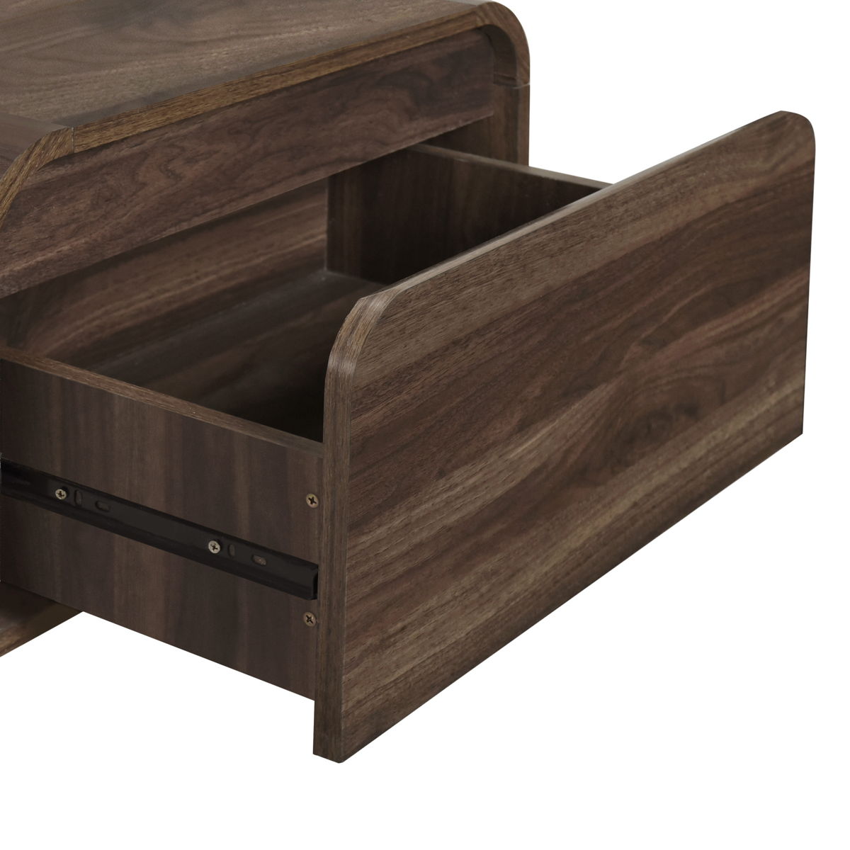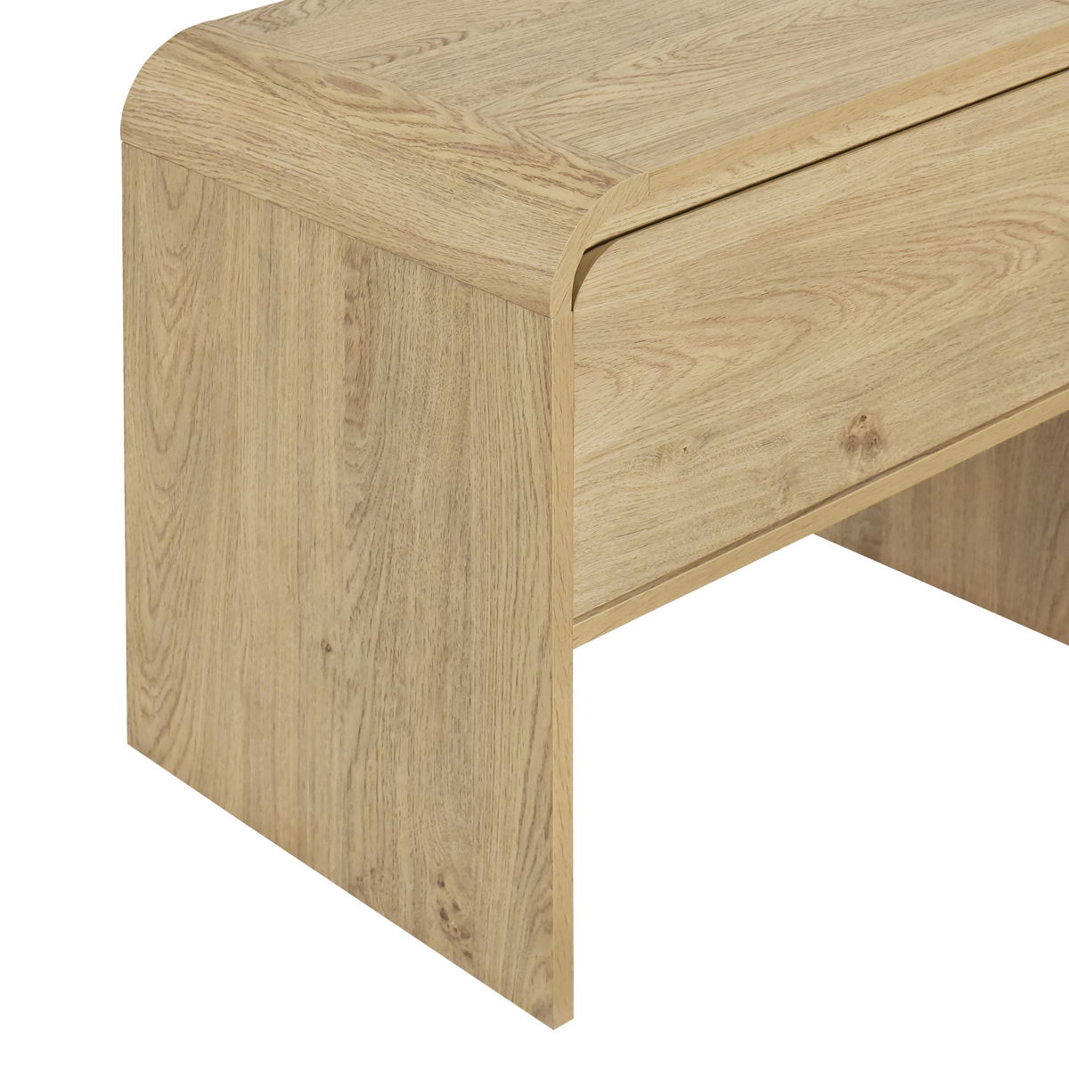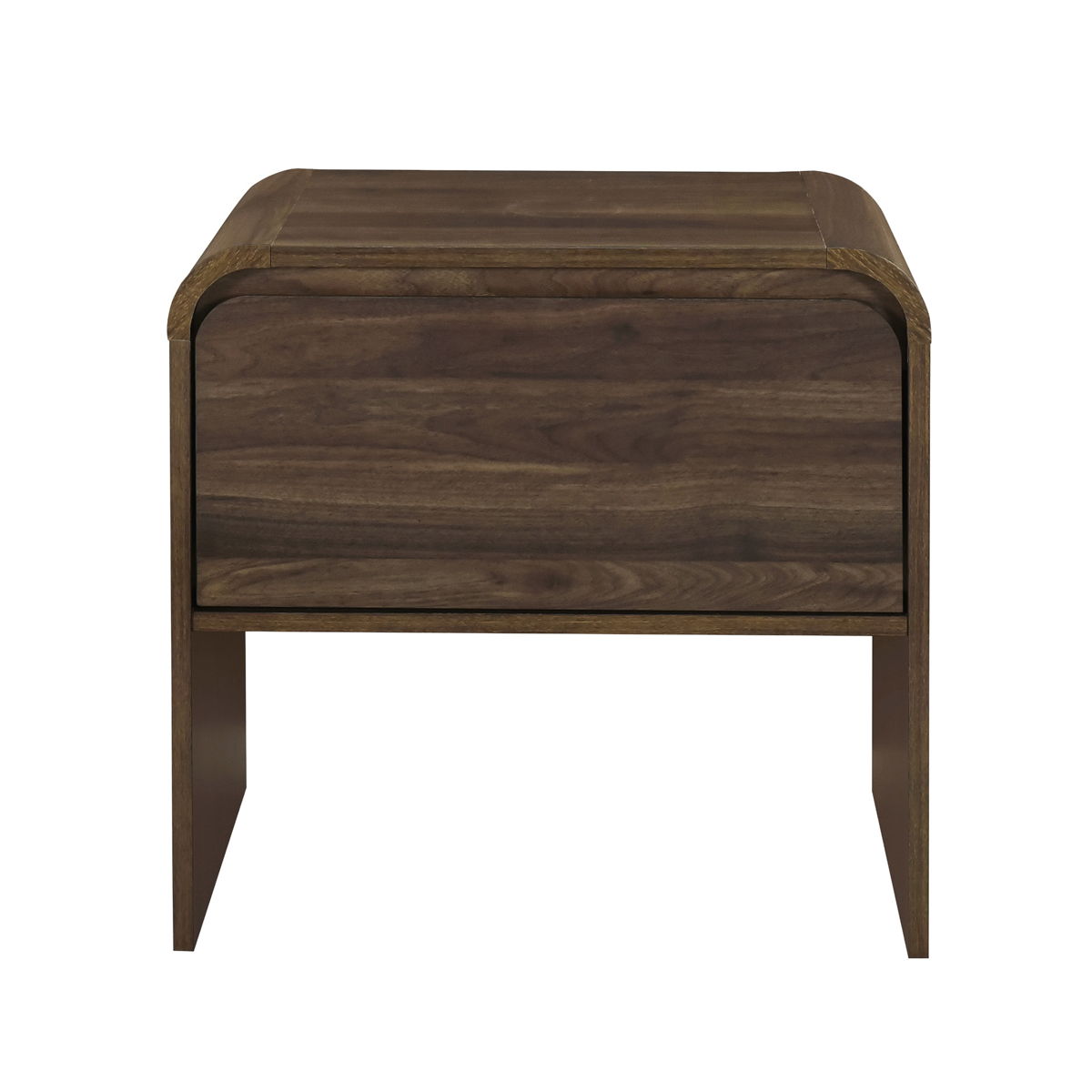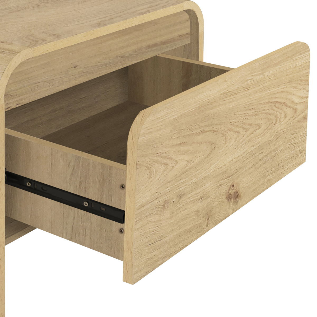 Introducing the Mara One Drawer End Table, a testament to eco-friendly craftsmanship and modern design. Crafted from durable manufactured wood and adorned with environmentally friendly laminate, this end table offers both style and sustainability. Its ample surface area provides space for lamps and accessories, while the discreet storage drawer keeps remotes and reading materials neatly out of sight. The minimalist design, accentuated by curved drawer fronts and waterfall-style tops and sides, adds a touch of contemporary elegance to any room. Finished in a natural hue, it effortlessly complements a variety of décors, making it a versatile choice for your home. Experience functionality and sophistication with the Mara One Drawer End Table.
