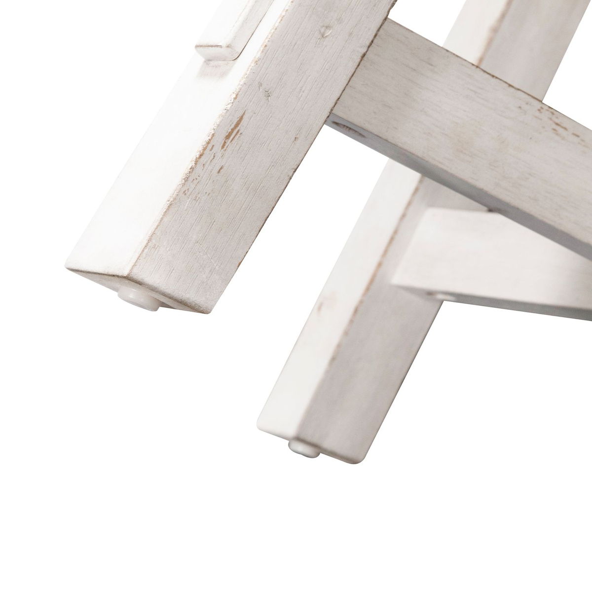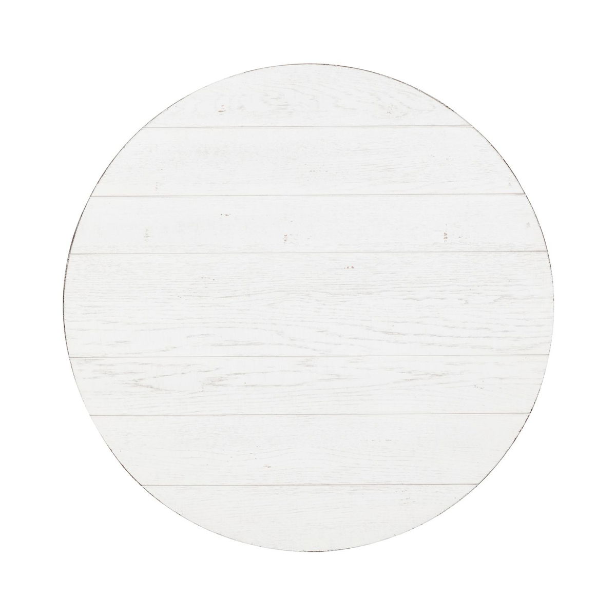 Accent your space with the Modern Farmhouse splay leg round cocktail table. Crafted of poplar solids with knotty oak veneers, this piece features a dusty flea market finish with heavy distressing, appealing high-low planked top, anchored by a splayed leg design. This modern farmhouse piece would be a wonderful addition to your cottage or contemporary style space.