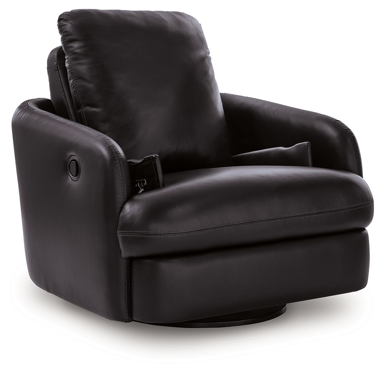 Looking cool and contemporary is great. But when it comes down to it, you’re all about affordably luxurious lounging. With the top grain leather and expertly matched faux leather on this swivel glider recliner, you get the sleek look you love without breaking the bank. Its easy one-pull reclining motion effortlessly brings you to a reclined and relaxed position. So grab some popcorn, settle in and enjoy the show.