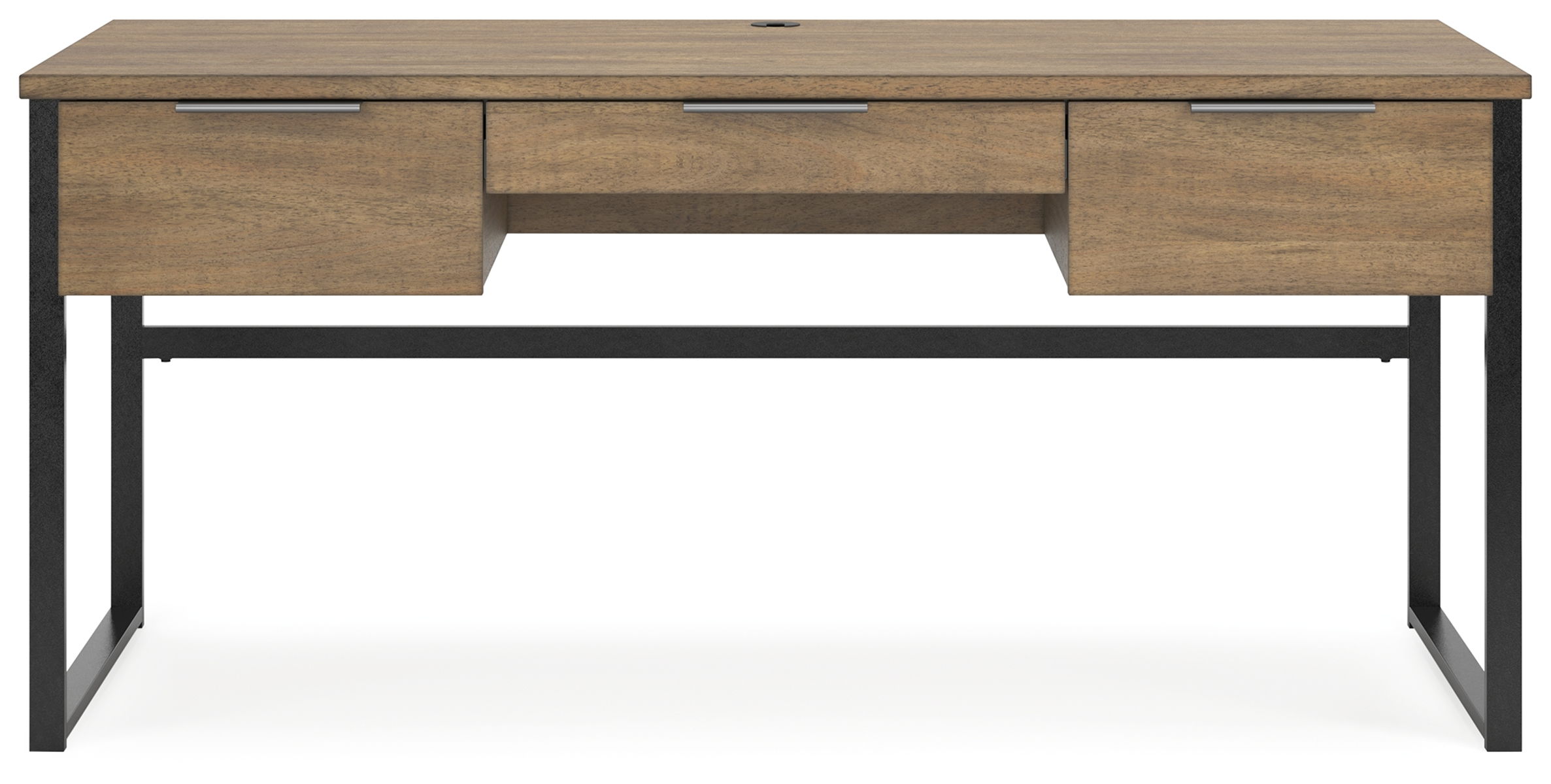 Sleek in its simplicity, this home office desk encourages you to work or study in style. Its mixed-material design brings a trendy, urban-chic feel to your work area. Functional features keep the desk top clutter-free—easily tuck away essentials in the three drawers, and conceal power cords with the open raceway.