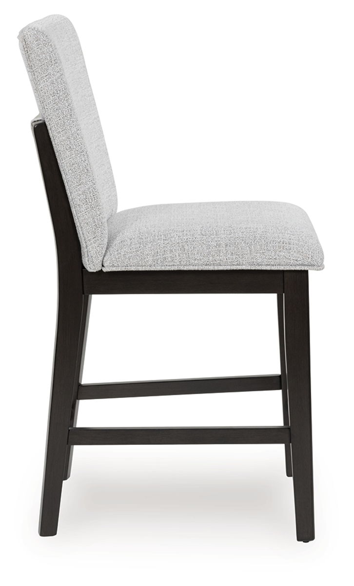 This counter height bar stool is the perfect blend of casual and contemporary styles. Its easy-clean Next-Gen Nuvella™ upholstery remains vibrant and resists stains for added convenience, while a dark grayish brown finish keeps the look right on trend. Expertly balancing high style and low maintenance, it brings both flair and function to dining.