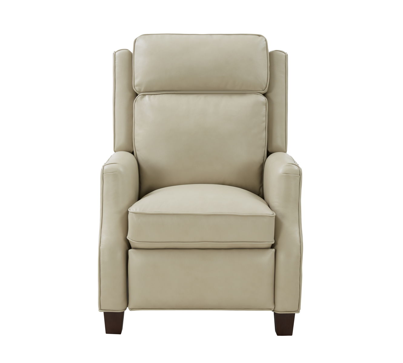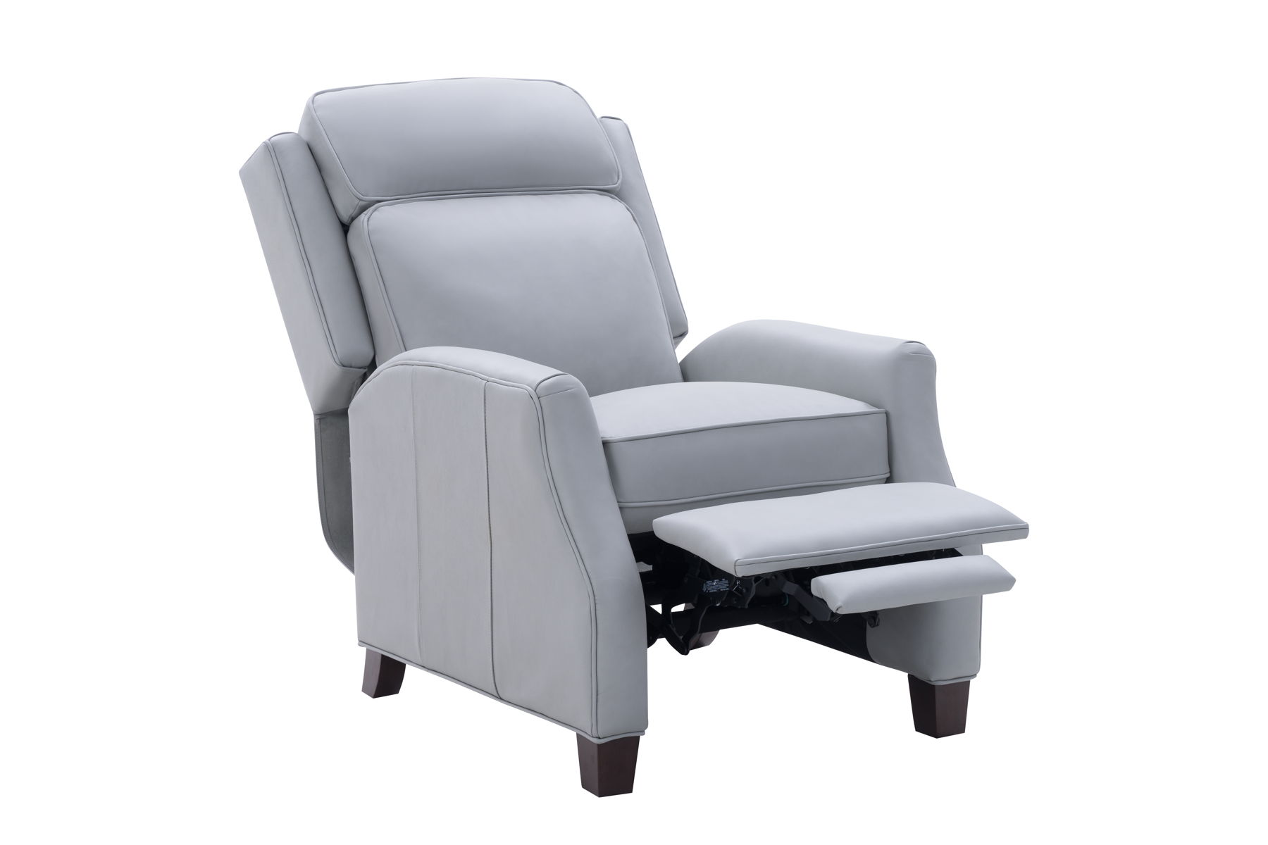 High Pub Back Push Thru The Arms 3 Way Recliner With Articulated Head Rest Area For Additional Support And Footrest Extension For Complete Body Comfort. Welt Detail On The Wings, Arms, Back And Seat. Tight Boxed Seat Has Pocket Coils. Mahogany Finished Hand Carved Tapered Wood Legs Complete This Very Comfortable And Sophisticated Look.
