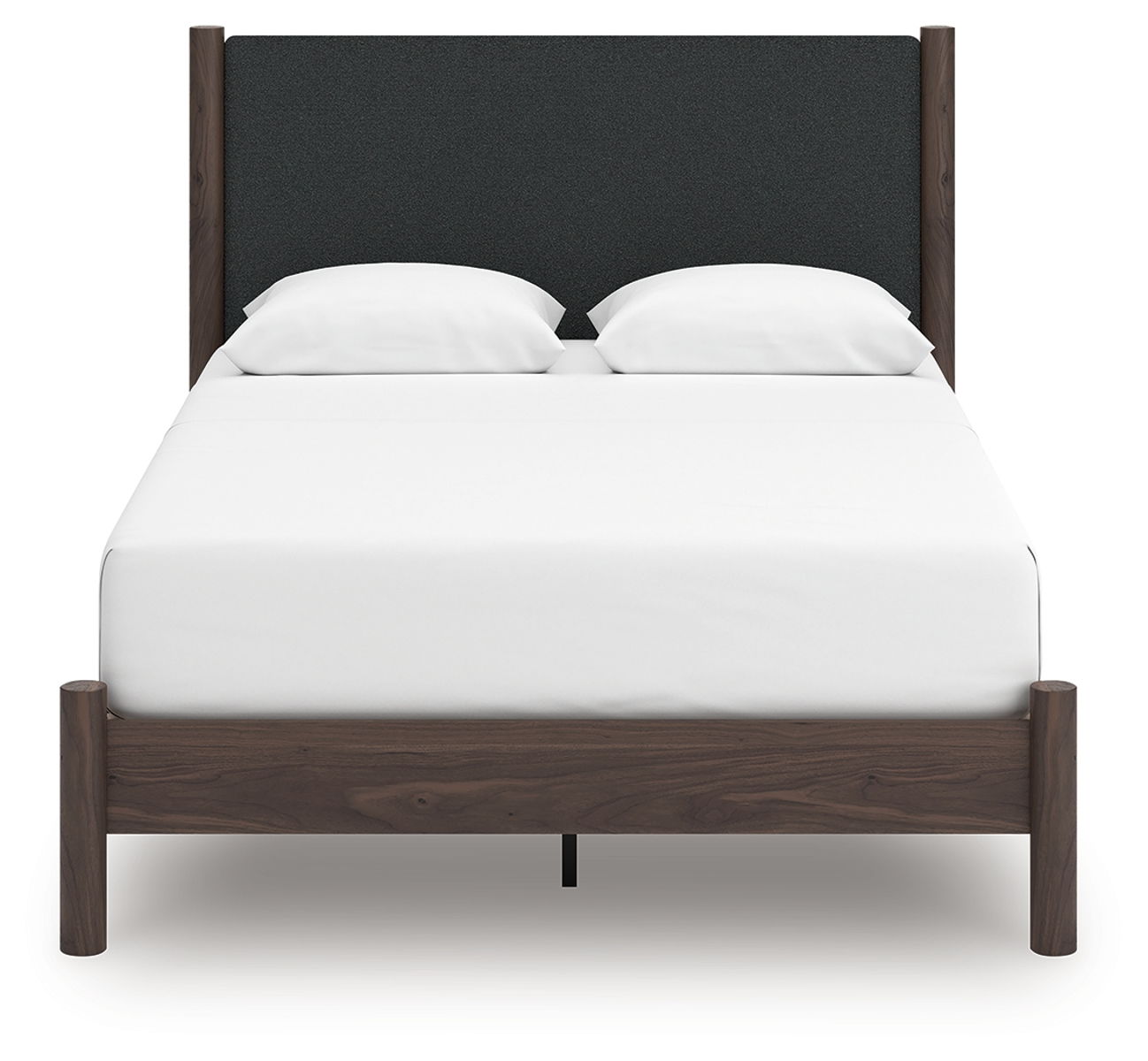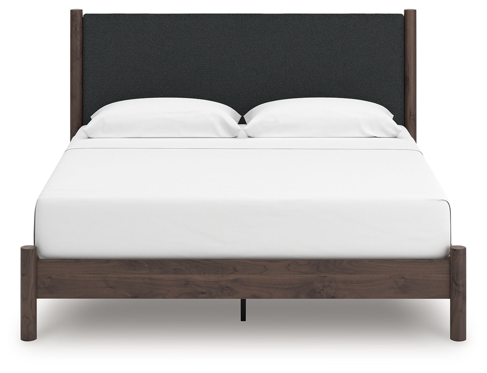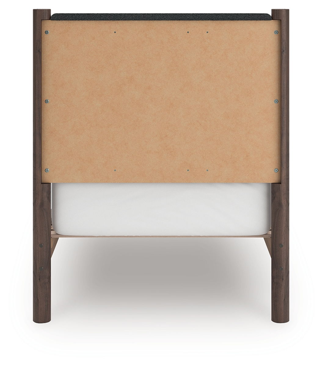 Crafted with both form and function in mind, this upholstered panel platform bed brings a dash of retro-cool character to your modern boho aesthetic. Its textured headboard fabric adds a trend-right touch to the classic silhouette. Warmly welcoming with a rich finish, the bed pairs well with muted hues, earth tones and other neutrals alike. What a refined take on easygoing style.