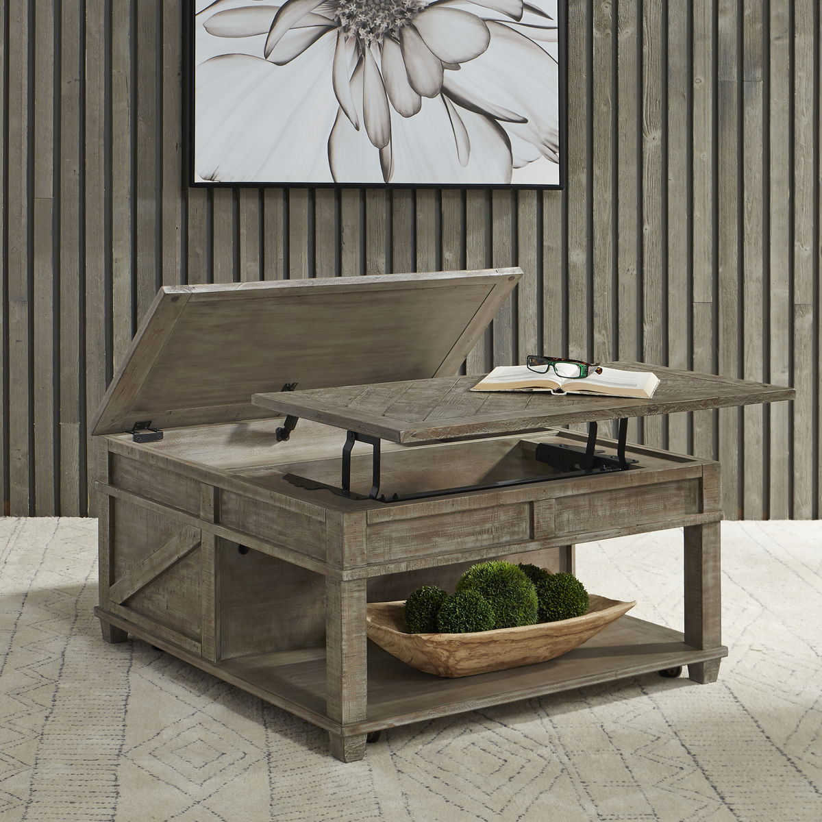 The essence of the urban living furniture is its unique ability to fit many different styles-Rustic, casual, contemporary-The Parkland Falls collection has both beauty and function. Square cocktail with lift top can be use for a laptop or a snack while watching your favorite shows. The versatility of this group makes the sofa table double as a TV console.