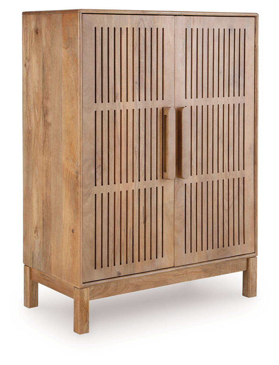 Host in casually chic fashion with this bar cabinet. Outfitted with a natural brown finish, it’s stunningly crafted with mango wood. Bottle and wine glass holders keep your entertaining and nightcap essentials neatly organized. And with a mix of fixed and removable shelves, you can adjust the cabinet space to suit your storage needs. Cutout door fronts grace the piece with an air of carefree charm.