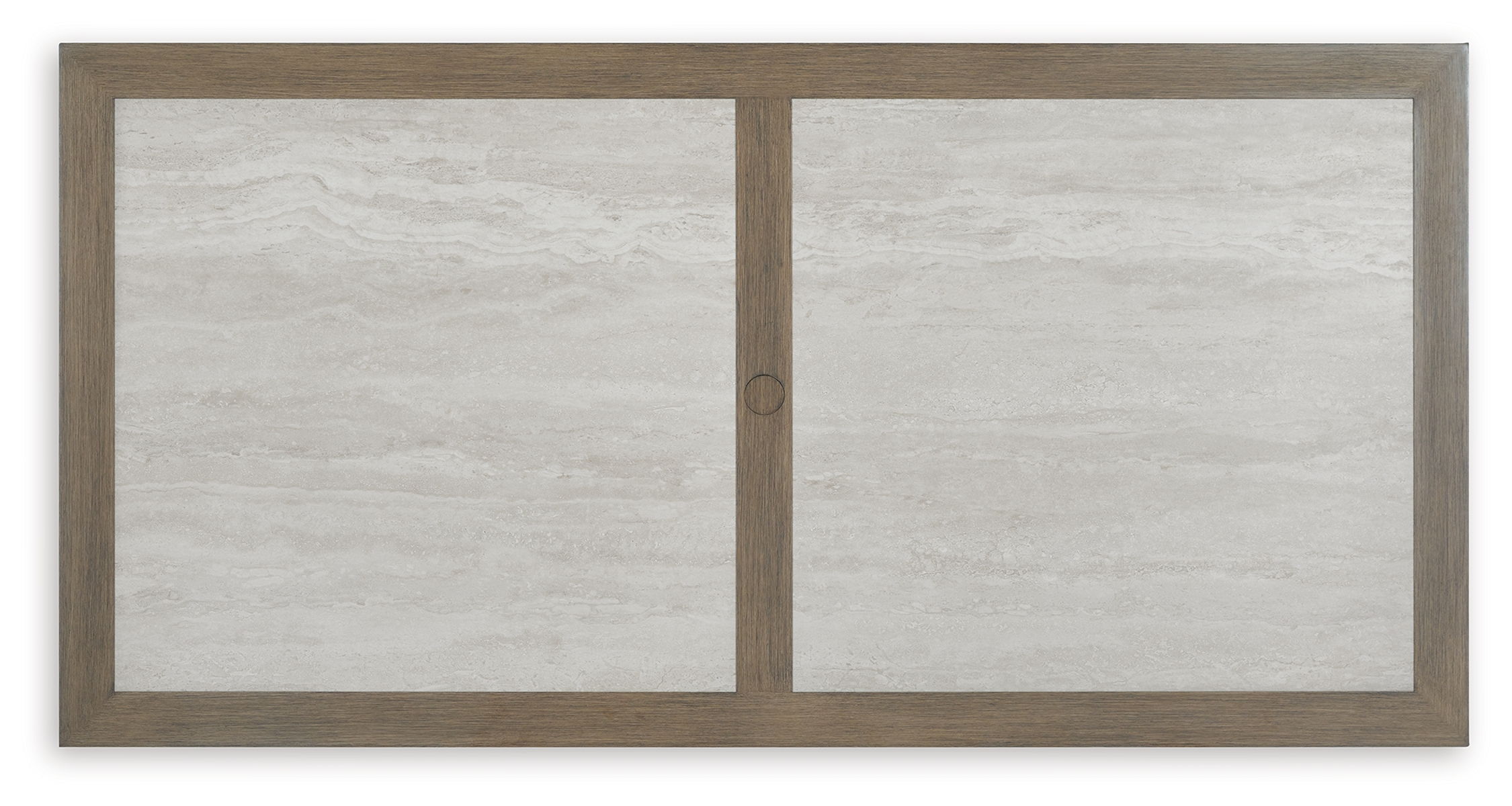 Experience the perfect combination of durability and style with this outdoor dining table. An aluminum frame with a wood-look finish maintains a sleek, contemporary aesthetic, while the sintered stone tabletop adds an element of natural elegance. This delightful addition to your outdoor dining creates an oasis where comfort and beauty thrive.