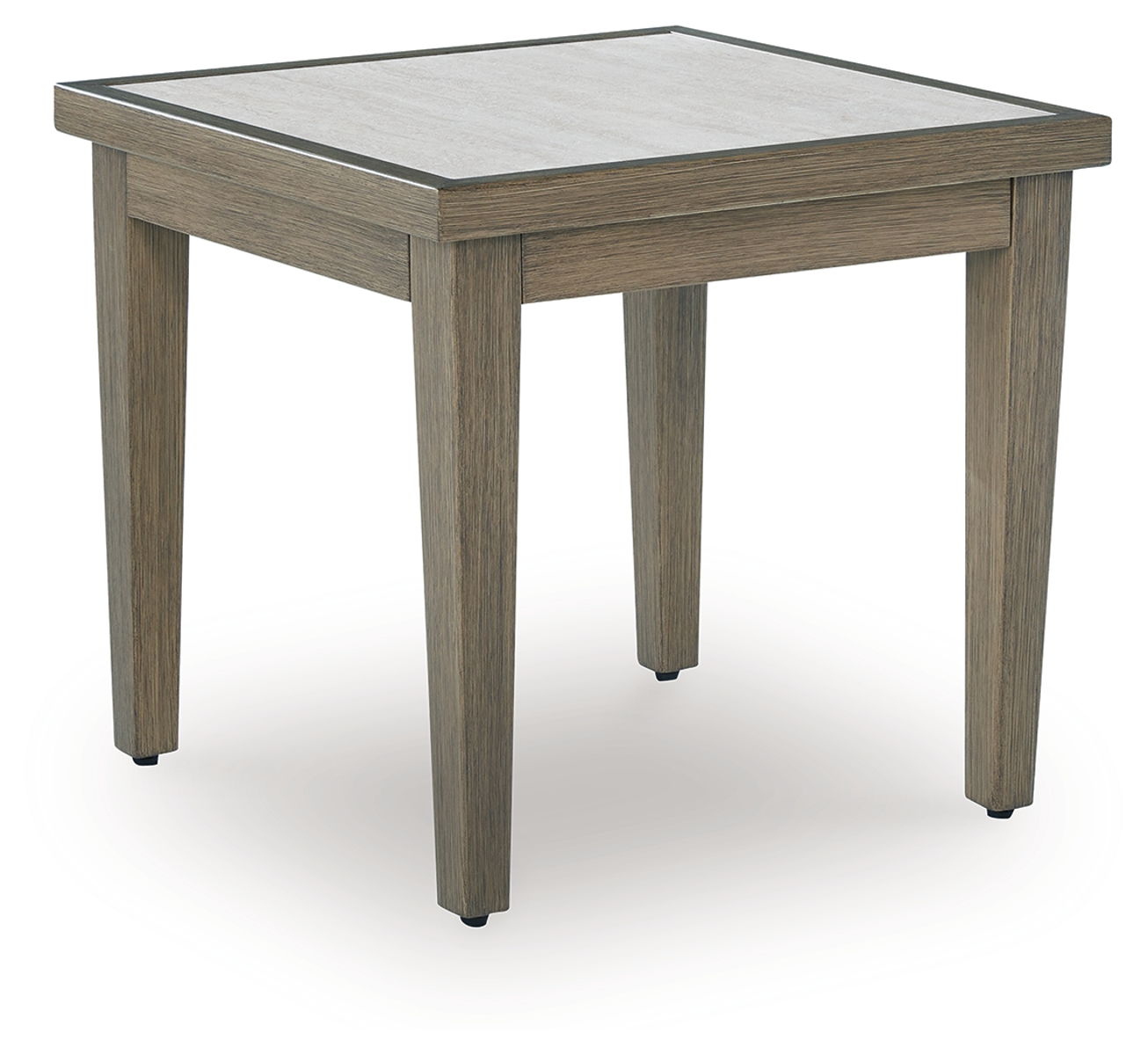 Experience the perfect combination of durability and style with this outdoor end table. An aluminum frame with a wood-look finish maintains a sleek, contemporary aesthetic, while the sintered stone tabletop adds an element of natural elegance. This delightful companion to your outdoor seating creates an oasis where comfort and beauty thrive.
