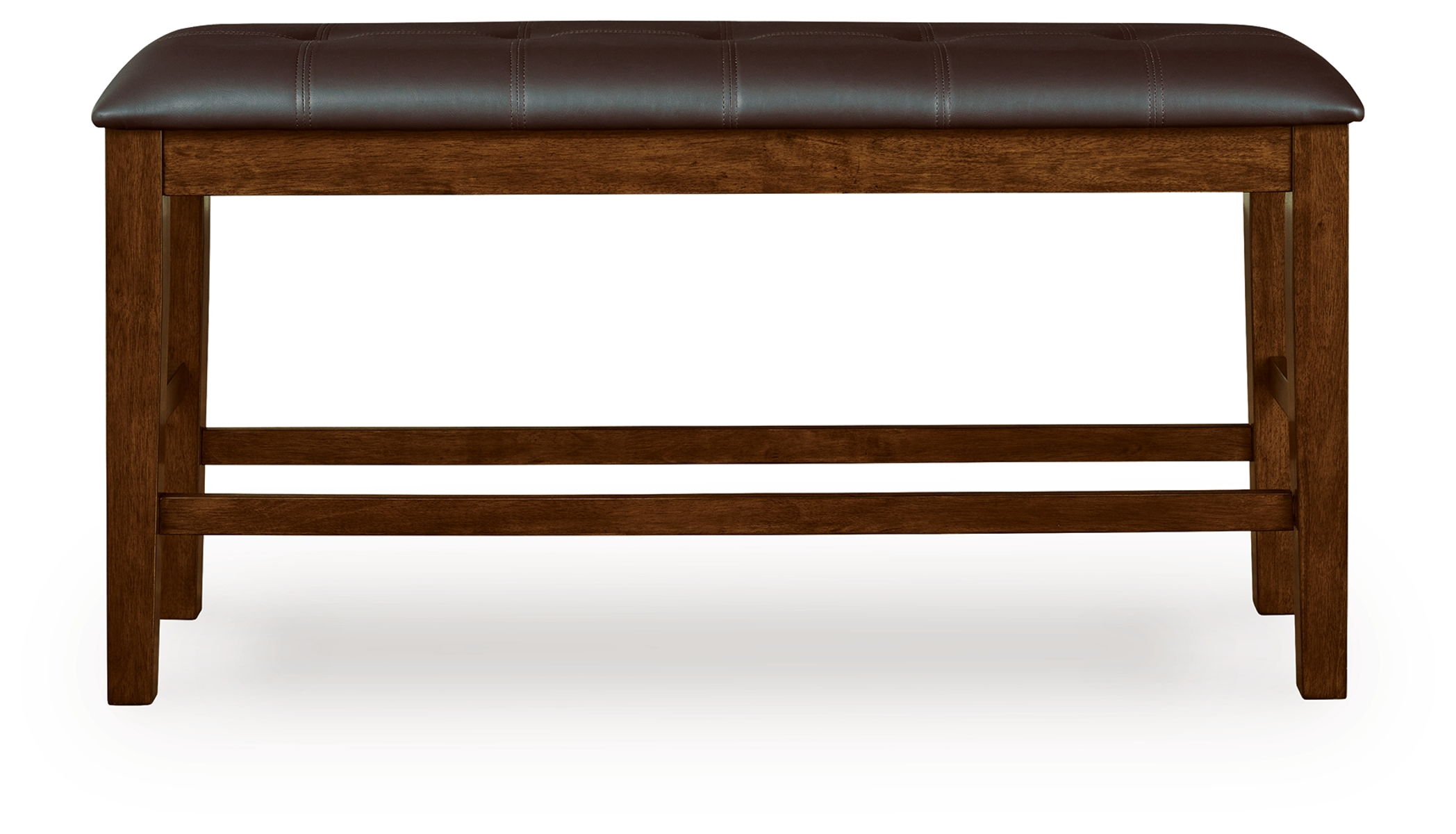 This dining bench beautifully captures the essence of rustic refinement. Its plushly upholstered faux leather makes pulling up a seat so much more enticing. Makes for easy cleanup, too.