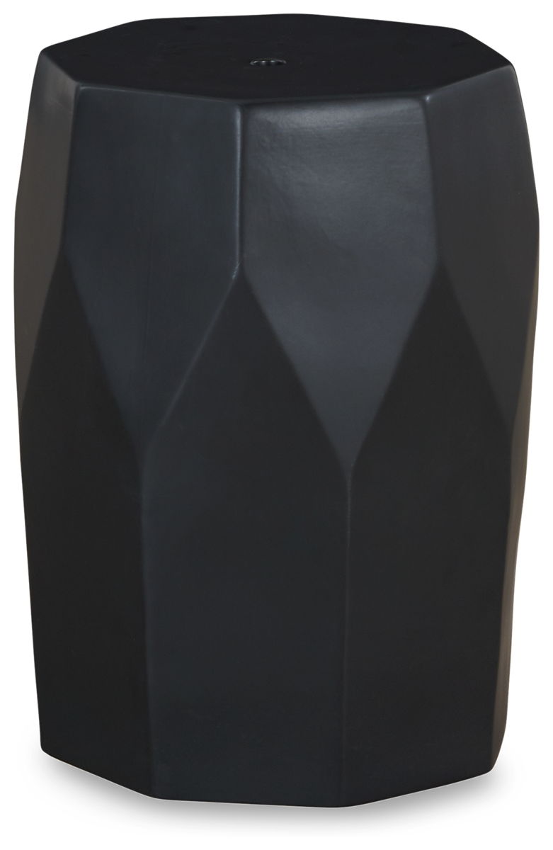 Bring fresh flair to an indoor or outdoor space with this contemporary accent stool. Next to a chair, it’s the perfect place to set down a drink. And what a pretty perch for a draping plant. However you use it, you’re sure to appreciate its bold faceted sides and edgy matte black finish.