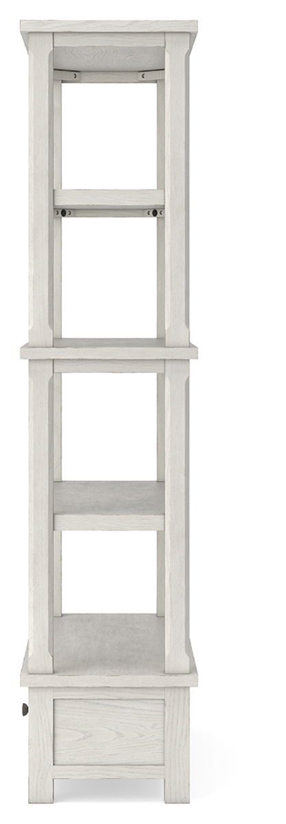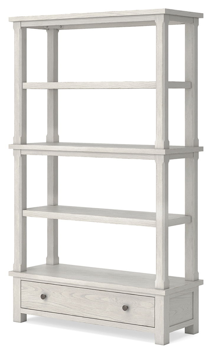 This bookcase is sure to impress when it’s time to study or work from home. With its antiqued white finish and wood grain texture, modern farmhouse-style workstations have never been so fashionable. The open four-shelf design is ideal for storage and displaying your treasures. And that large storage drawer brings even more function to your workspace. All that’s missing is you.